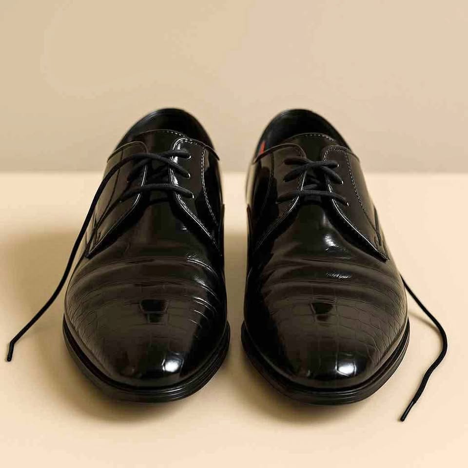 Step into sophistication with these sleek black glossy formal shoes, crafted for class and confidence. Featuring a smooth patent-style finish with subtle texture detailing and a bold red interior lining, these shoes are perfect for weddings, office events, or formal dinners. The lace-up design ensures a secure fit, while the cushioned insole provides lasting comfort for all-day wear.