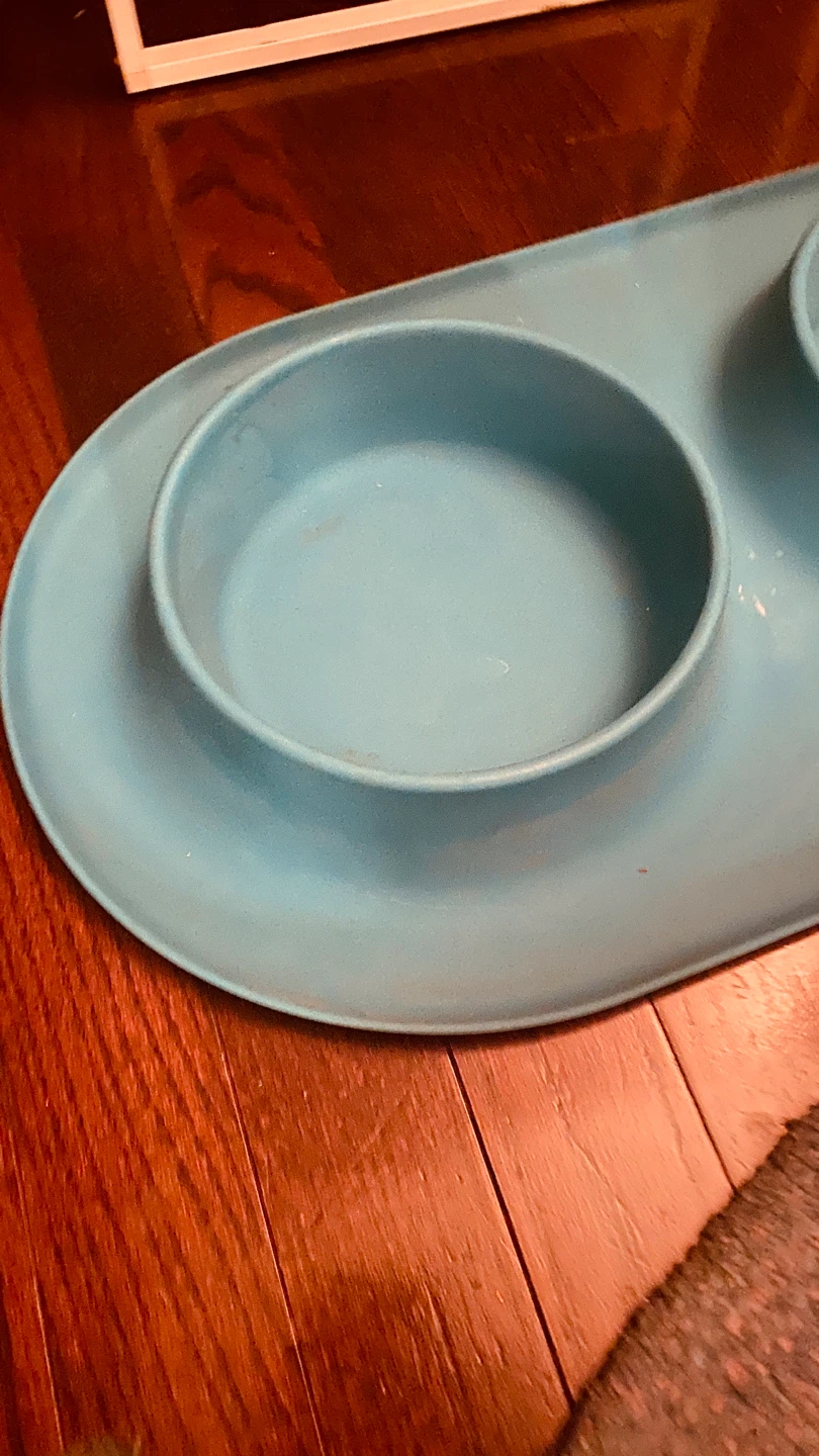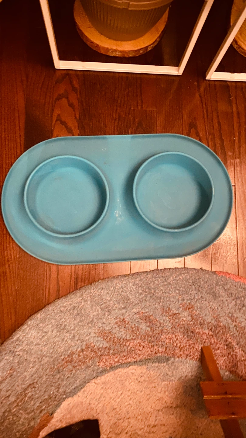 Selling a light blue double pet bowl. It's in great condition and perfect for feeding two pets at once or for providing both food and water. It's easy to clean and a nice addition to any pet-friendly home!
