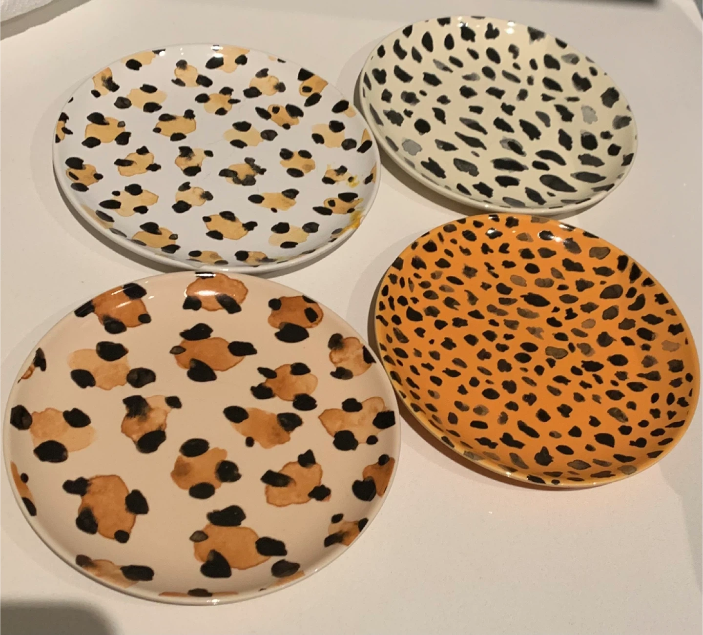 Add some fun to your table with this set of 4 appetizer/desert plates! Each plate features a unique animal print design 🐆. Designer: Jubilee/Danica (also sold under Wild Heart).