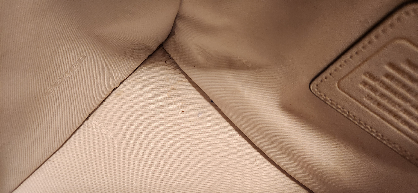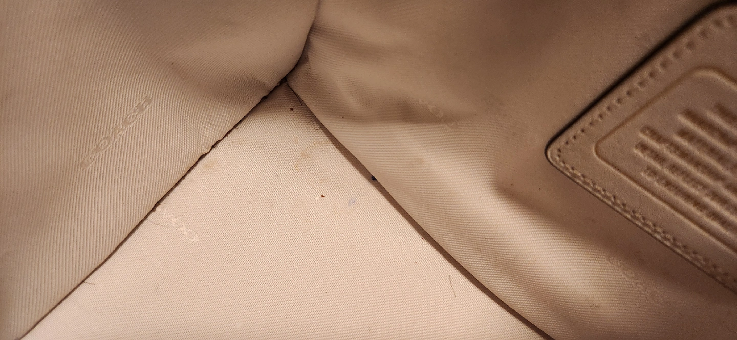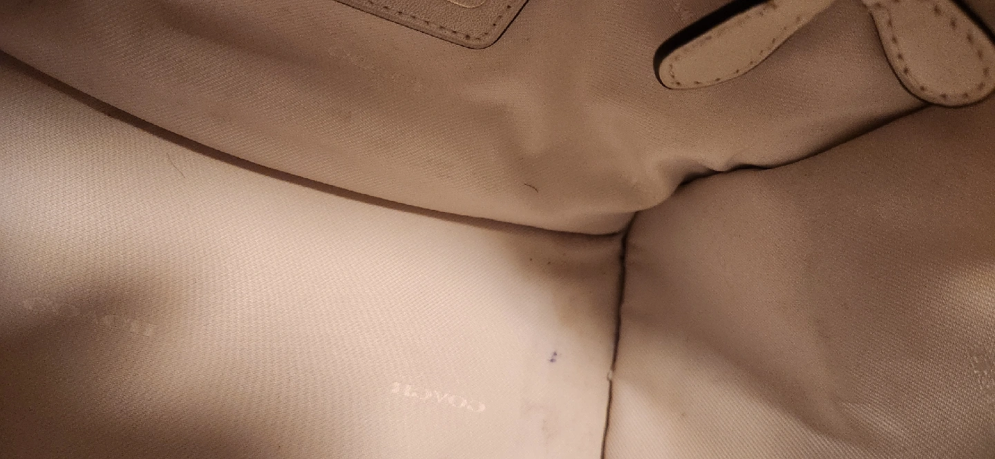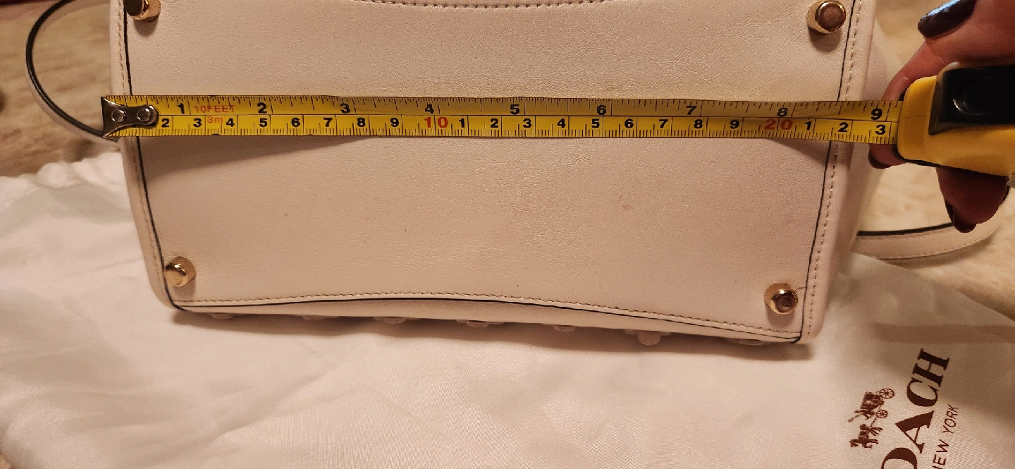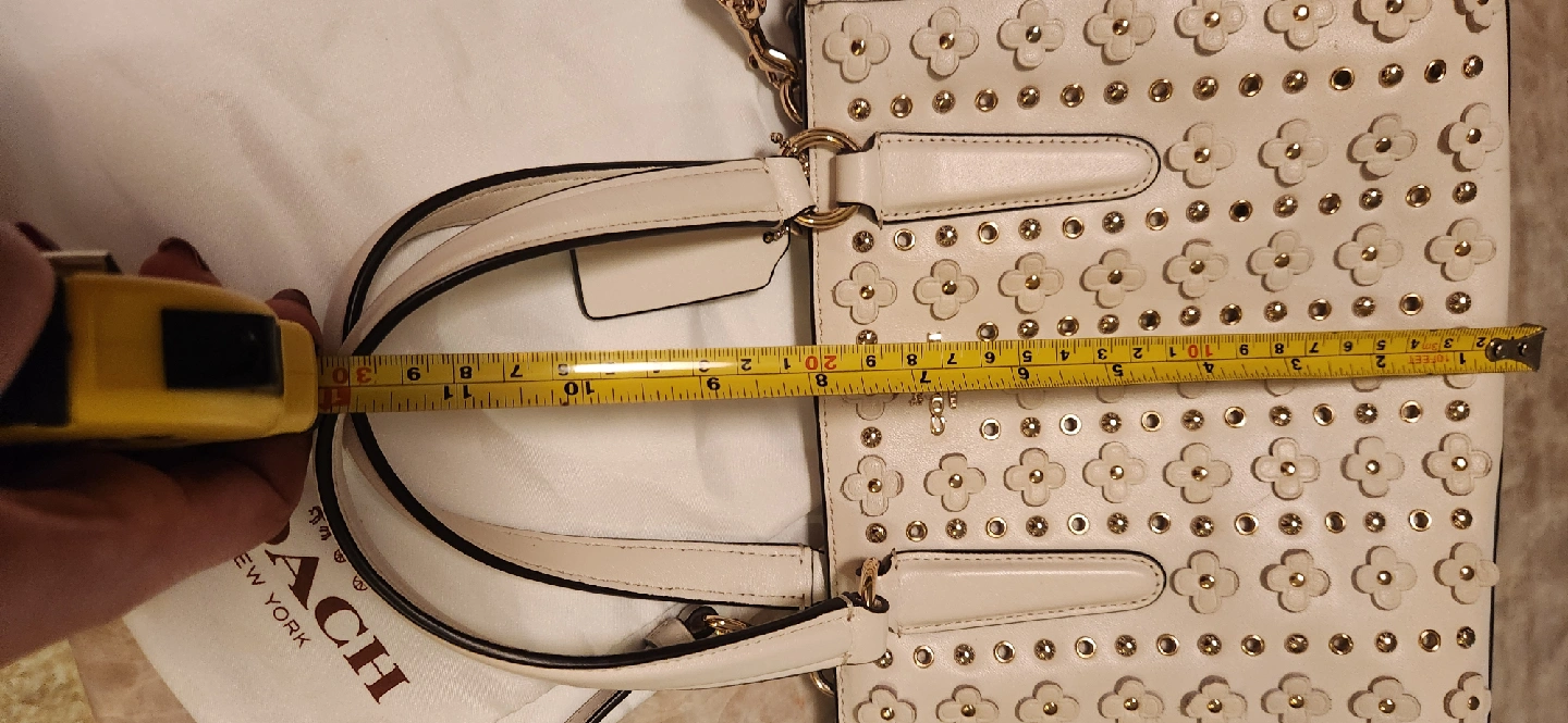 Selling a Coach satchel in a lovely off-white colour with floral rivet details. It's in great shape and measures approximately 10 inches across. Comes with its original dust bag! Lining has faint stains.
