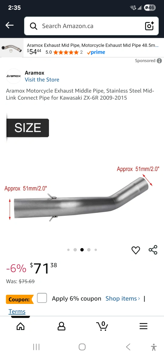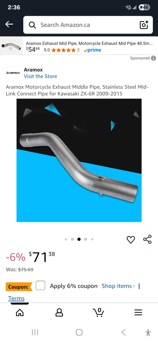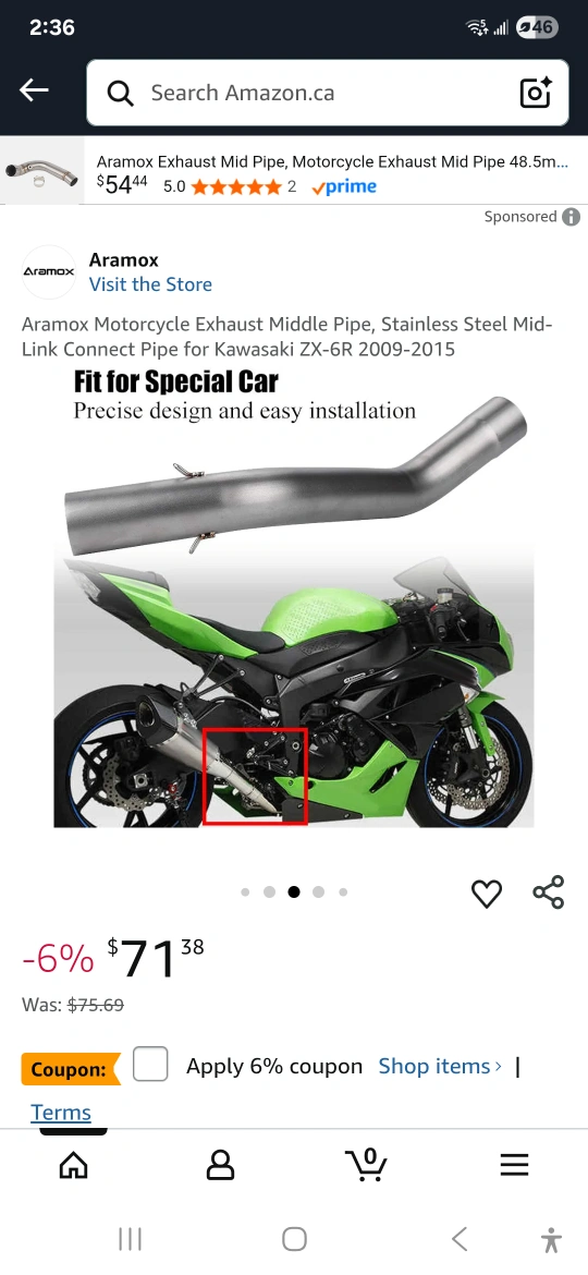 197Selling an Aramox motorcycle exhaust middle pipe. It's made of stainless steel and is designed to fit Kawasaki ZX-6R models from 2009-2015. It's a mid-link connect pipe with precise design and easy installation.