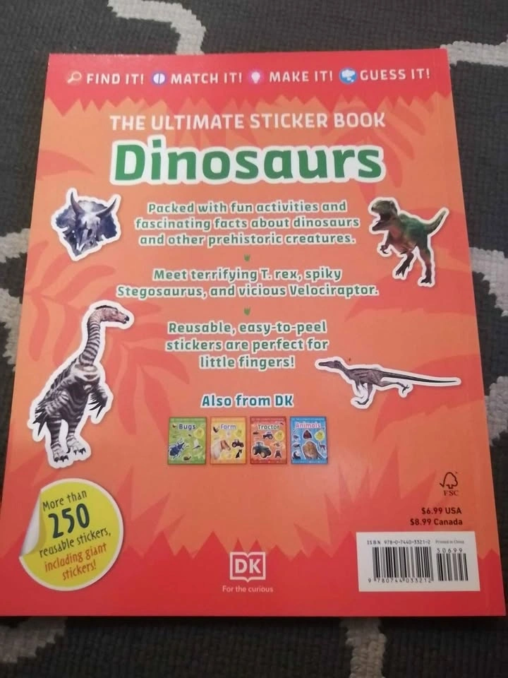 65Brand New Ultimate Dinosaur Sticker Book! Over 250 stickers and hours of fun for Kids. Soft Cover Book. $5.00/book.