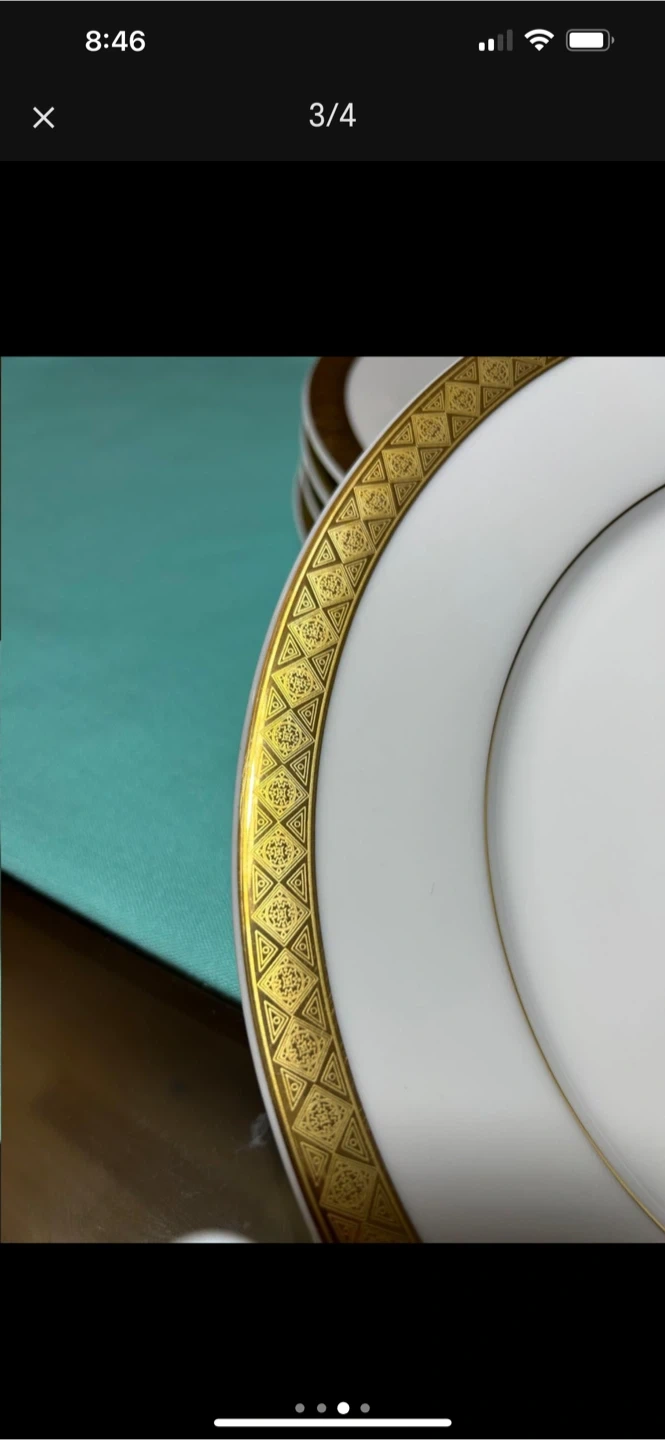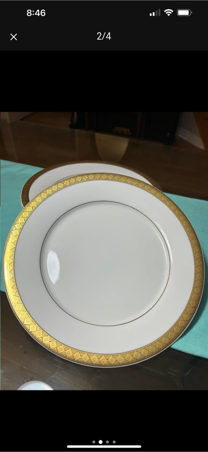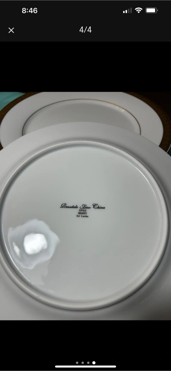 147Selling a set of Rosedale Fine China plates. They are white with a gold patterned rim. Would be a great addition to your dinnerware collection!