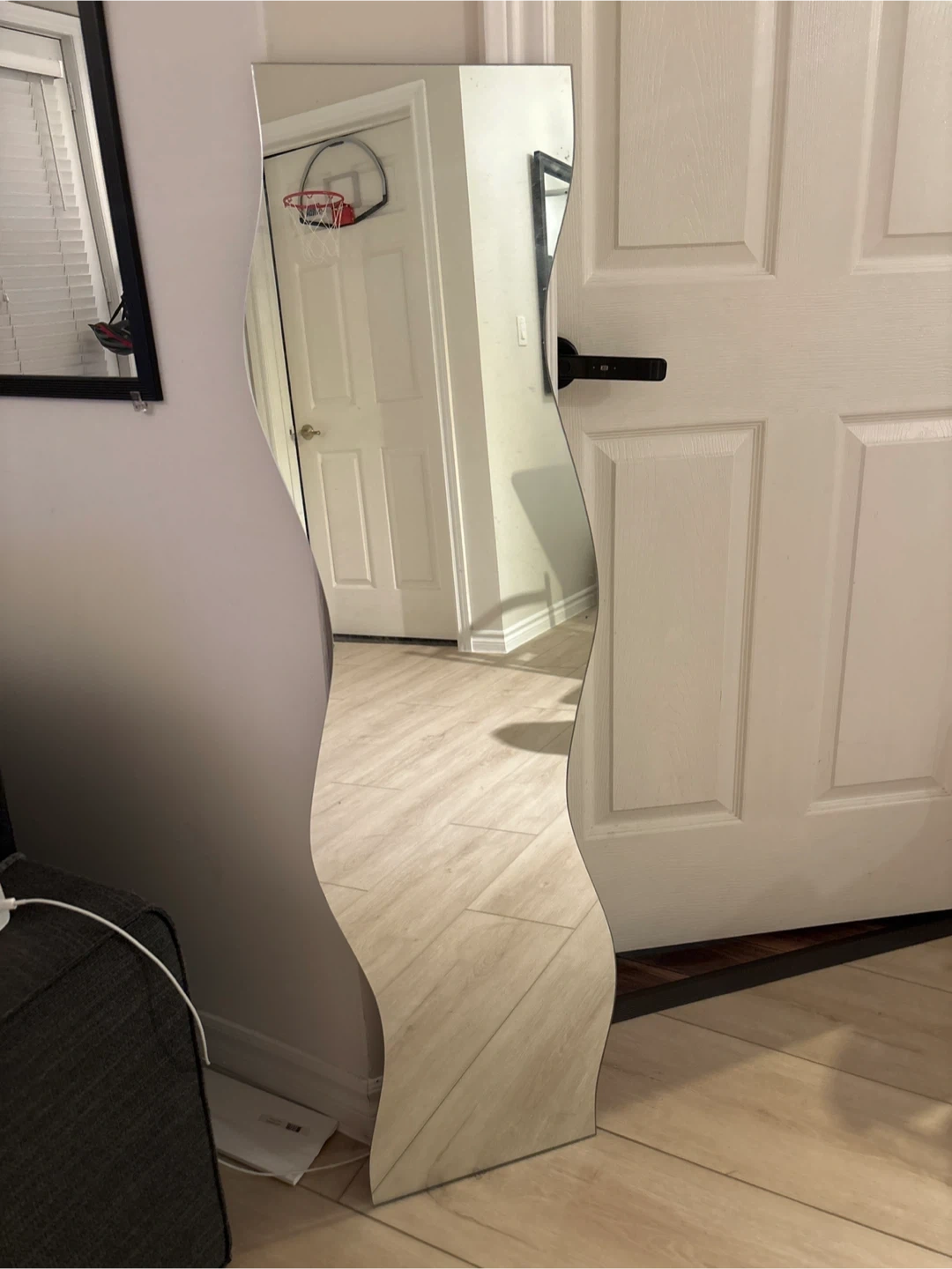 Buy & SellWavy Full Length MirrorWavy Full Length Mirror$32Selling a full-length mirror with a wavy design. It's in great condition and ready to add a unique touch to any room!ConditionLike newWHERE TO MEETCheck LocationView MapSELLERJovyGlen Abbey202 reviews1 chats·1 favorites·21 views