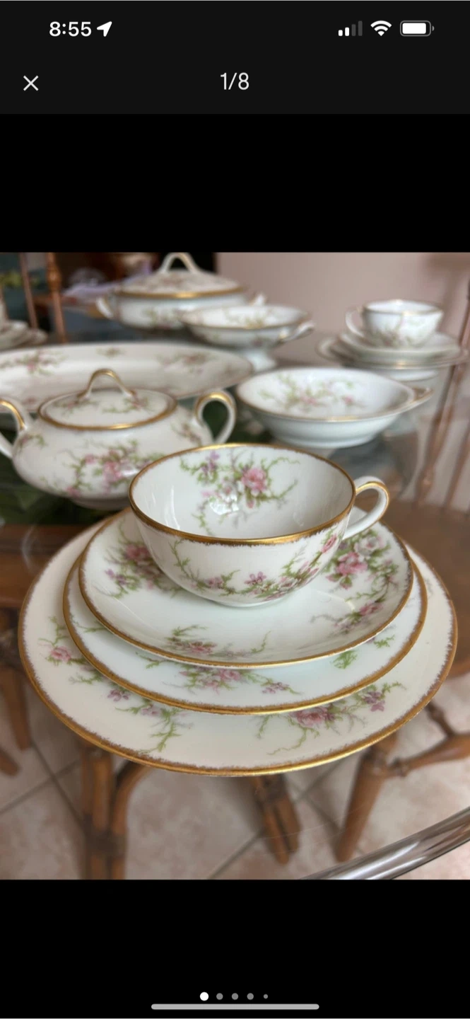 Selling a beautiful vintage china set with a delicate floral pattern and gold trim. It includes various pieces such as plates, bowls, cups, and serving dishes. Perfect for adding a touch of elegance to your dining experience!
