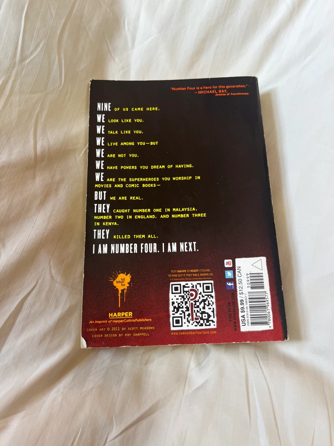 1 / 21 / 2Buy & SellI Am Number Four Book by Pittacus LoreI Am Number Four Book by Pittacus Lore$10Red and yellow cover of 'I Am Number Four' by Pittacus Lore. A New York Times bestseller. Good condition.ConditionGoodWHERE TO MEETTrinity Bellwoods ParkView MapSELLERverifiedfwuTrinity Bellwoods21315 reviews0 chats·0 favorites·1 viewsSEND CHAT TO SELLERHi fwu! I’m interested in your listing.Hi fwu! I’m interested in your listing.Get the Karrot app to chatSign In to chat