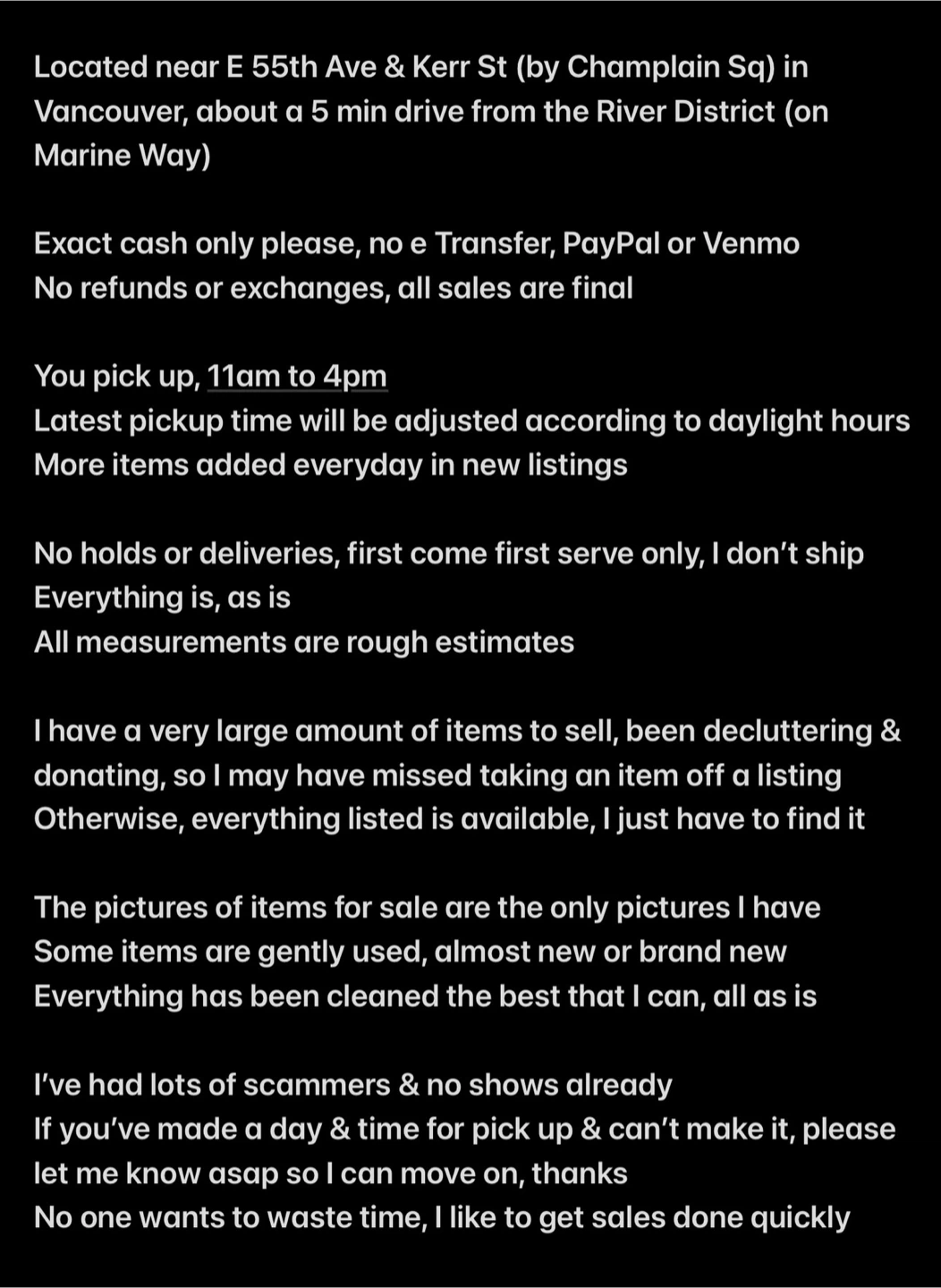 Last photo has general area for pick up, I’m a block from there
