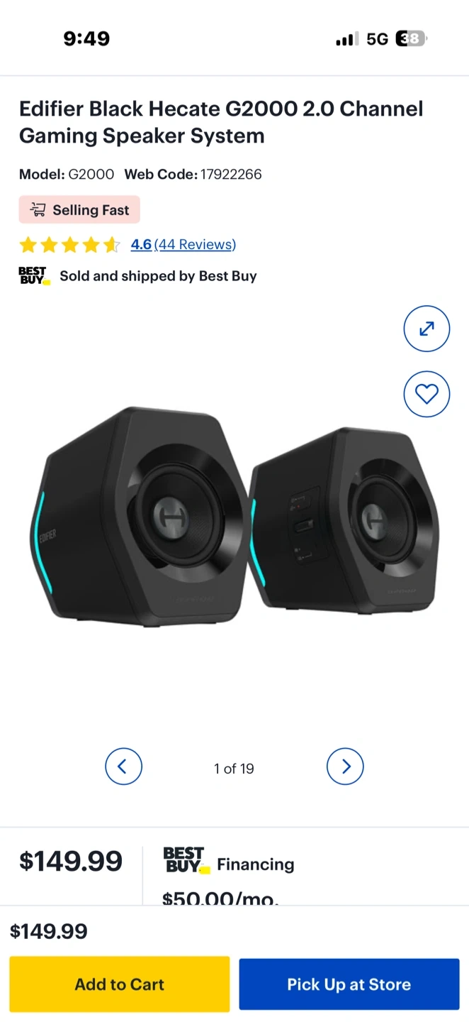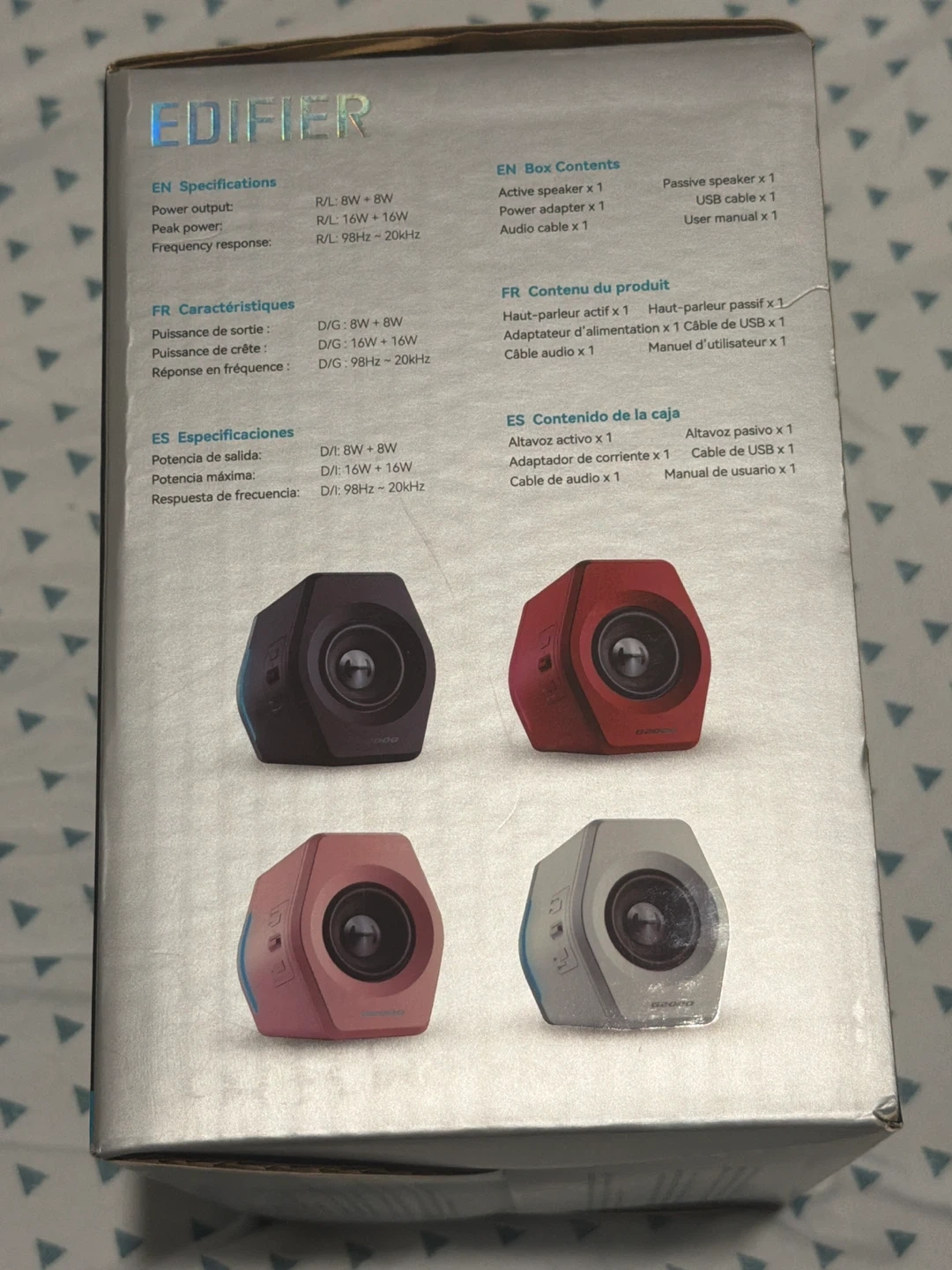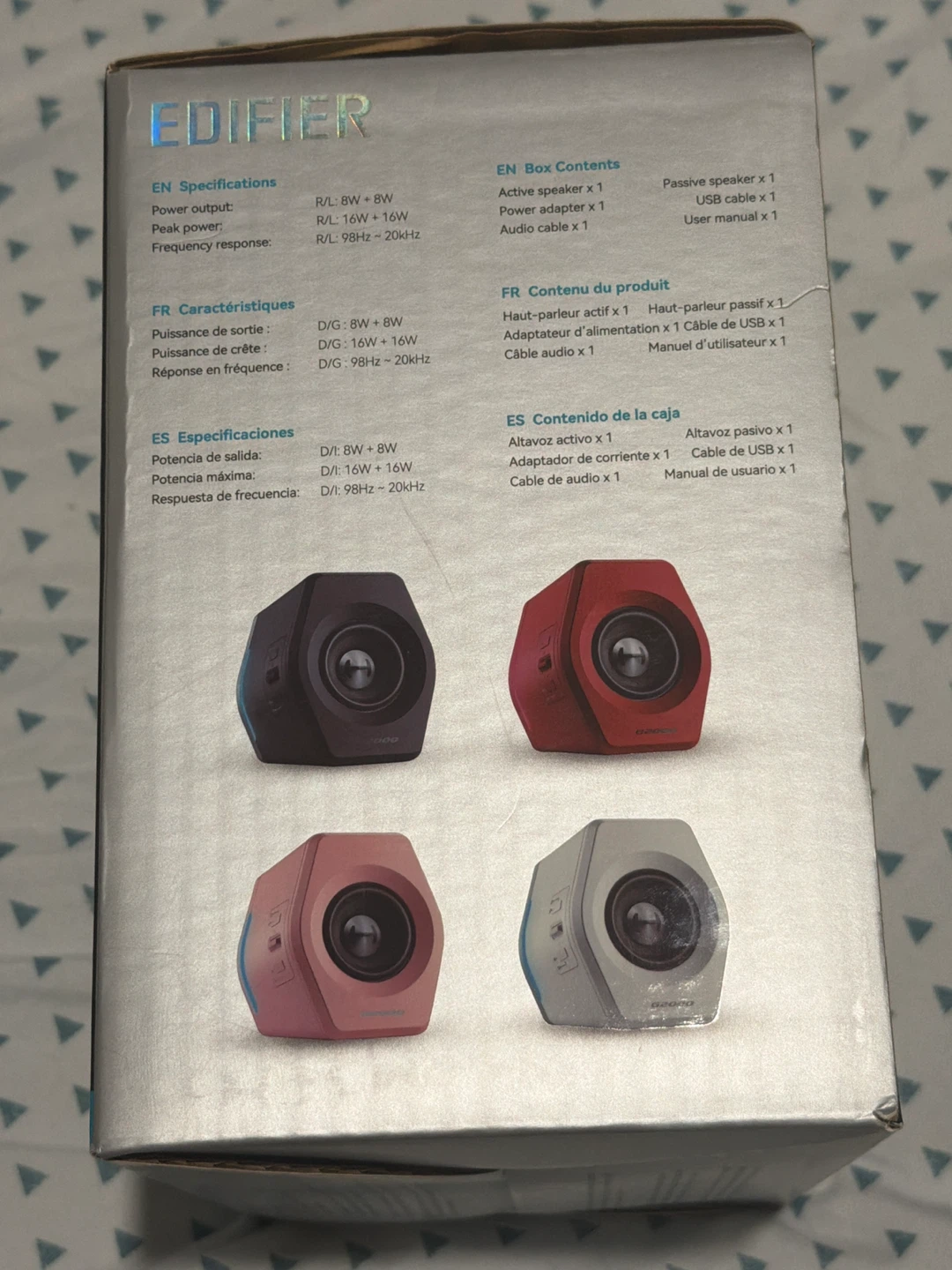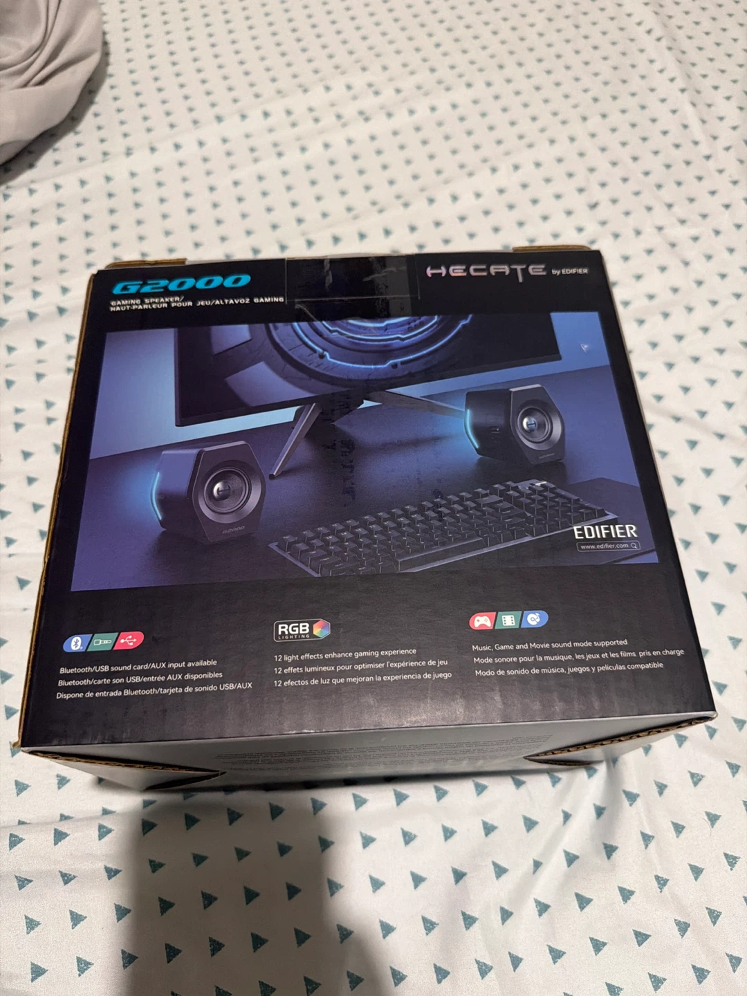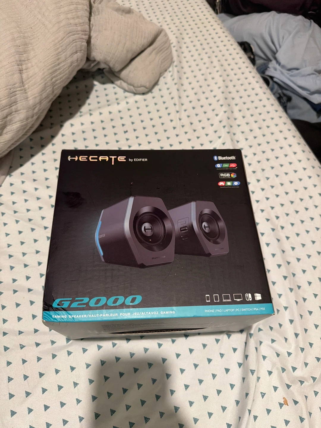 Selling a set of Edifier Hecate G2000 gaming speakers. They are brand new never opened the box never used them and come with the original box. These speakers feature Bluetooth, USB sound card/AUX input, and RGB lighting. They also support mobile, game, and movie sound modes. Originally bought for $149.99.