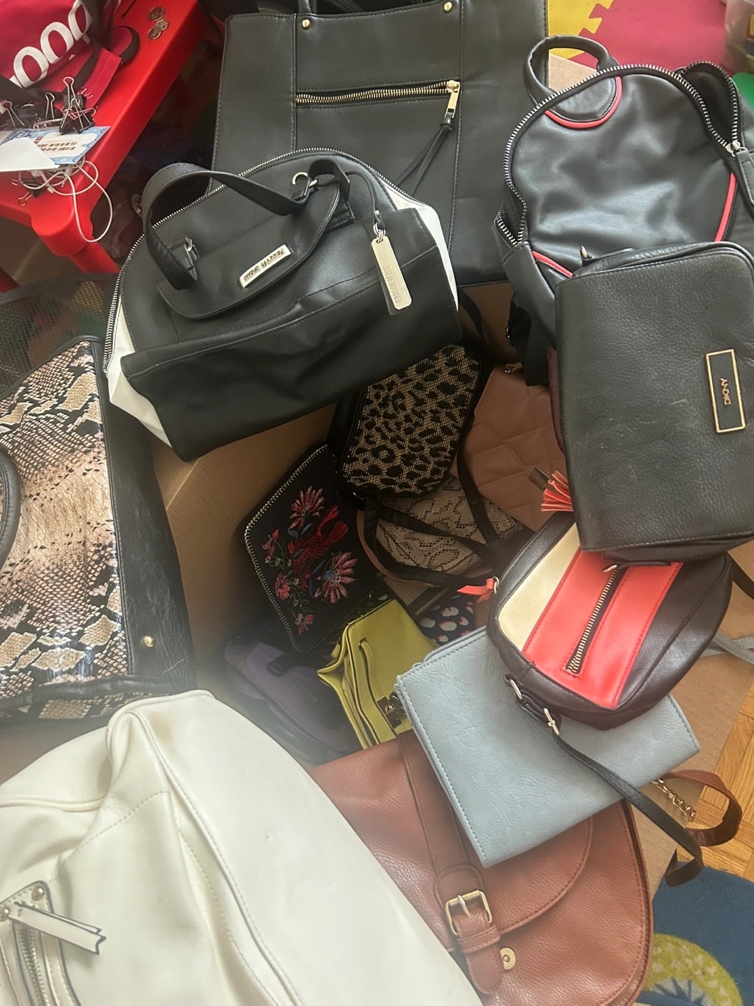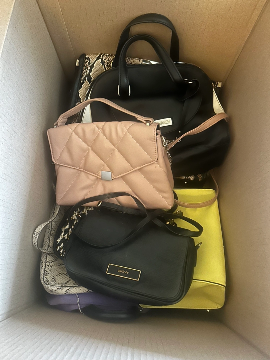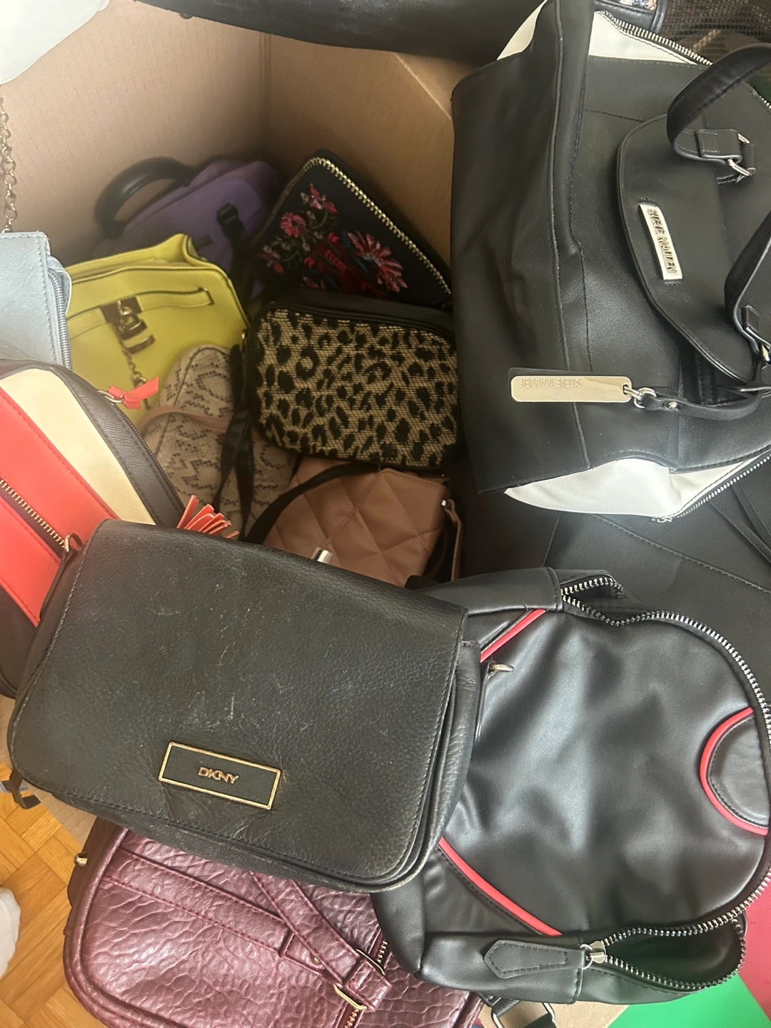21Selling a variety 22 used handbags in total from brands like Steve Madden and DKNY! Whole box $30 Take a look at the pictures to see the different styles and colours available