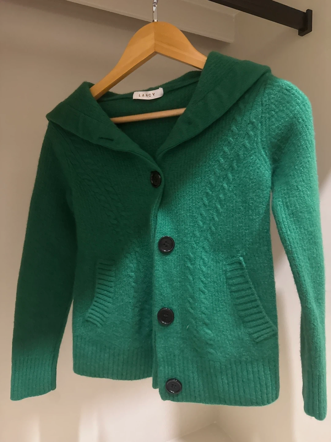 55Here's a cozy green cardigan from LARCY! It's made of 100% wool, so it's sure to keep you warm. Perfect for layering during the colder months! For kids 9-10y old.
