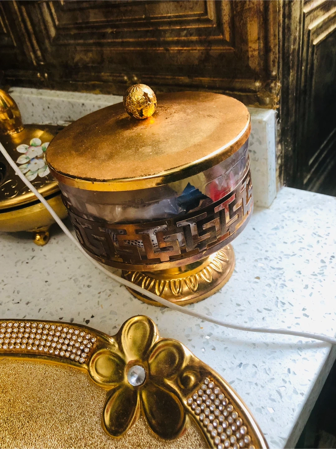 9Selling a decorative gold container. It has a unique design and could be a nice addition to your home decor