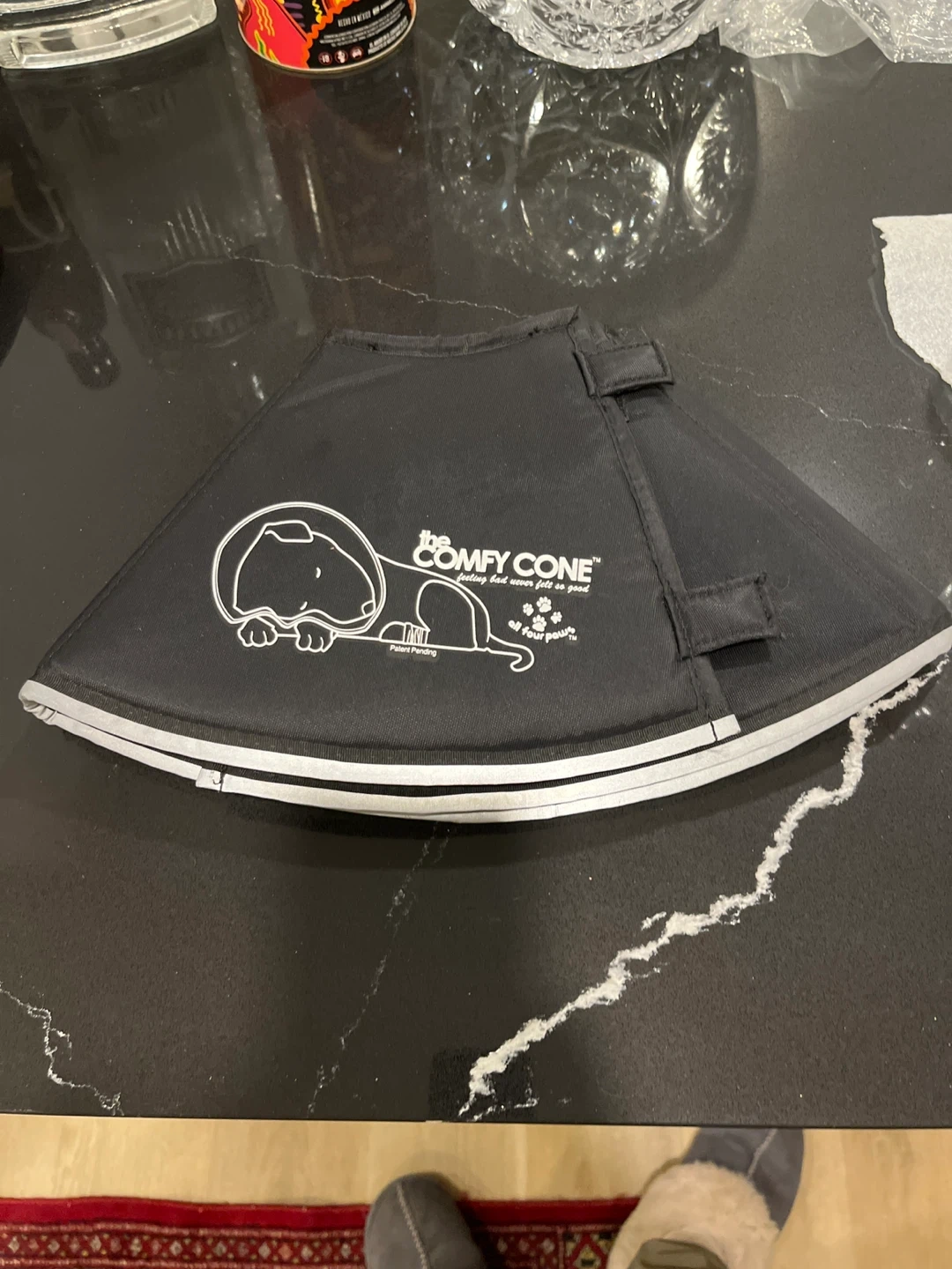Selling a gently used Comfy Cone for pets! It's in great shape and ready to help your furry friend recover comfortably. Perfect for preventing them from licking wounds or irritating sensitive areas. It's designed to be soft and flexible, ensuring your pet's comfort during the healing process.