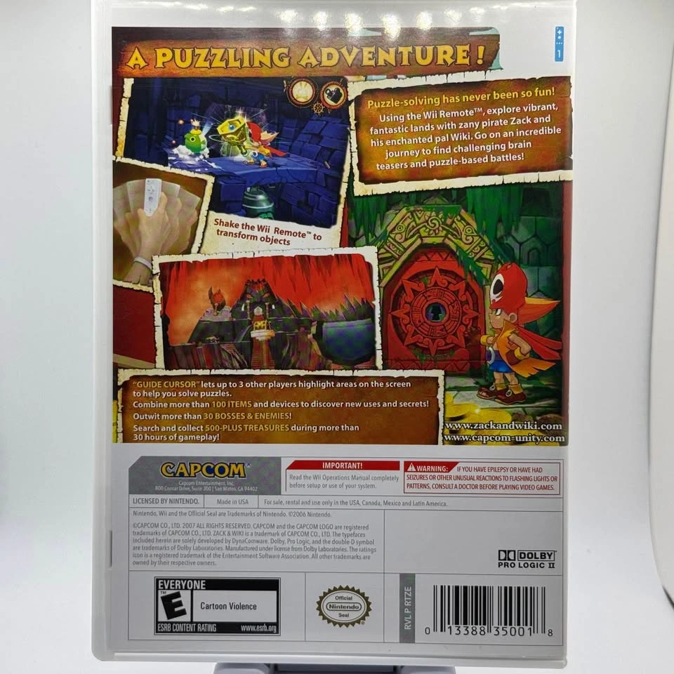 Comes complete and disc has no scratches. Both French and English manual booklets included. Join Zack and his trusty companion Wiki as they search for the legendary pirate Barbaros' hidden treasure. With innovative gameplay mechanics utilizing the Wii Remote, players will navigate through various challenges and brain-teasing puzzles to uncover the ultimate reward. Get ready to test your wits and embark on a thrilling quest like no other!