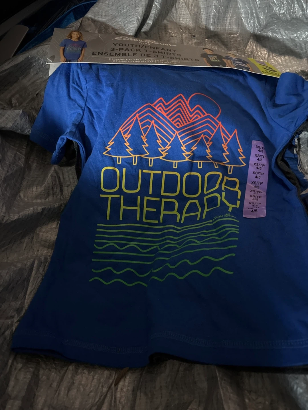 78Selling a brand new Eddie Bauer 3-pack of T-shirts for kids! These are size 4/5 and feature fun designs. The pack includes 2 graphic t-shirts and 1 all-over print t-shirt. Perfect for your little one's wardrobe
