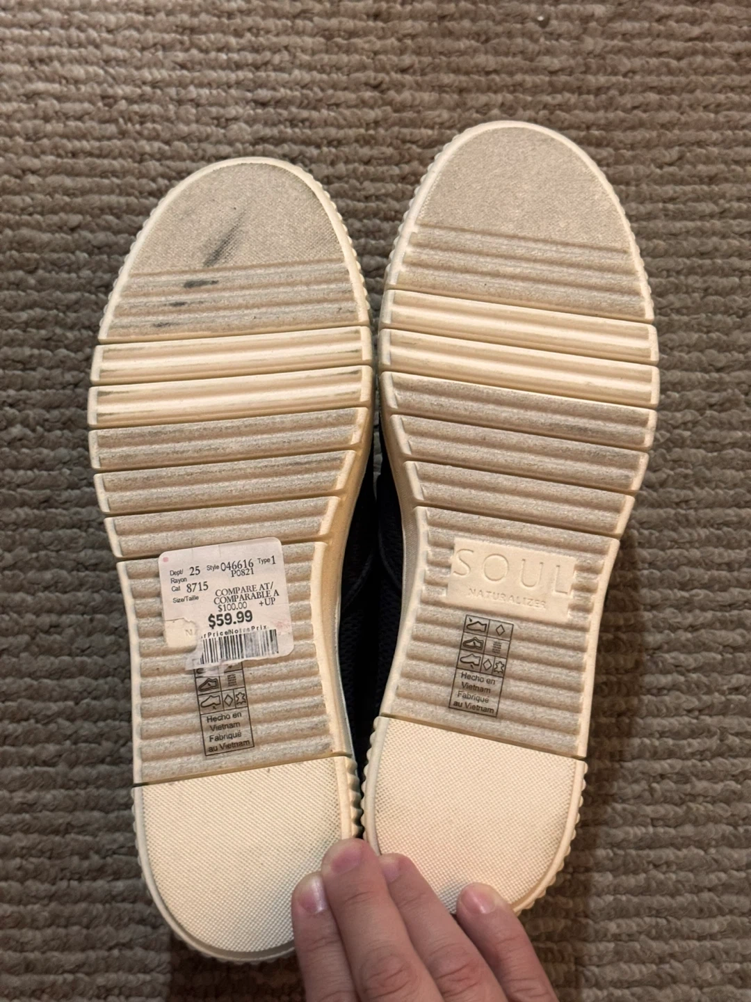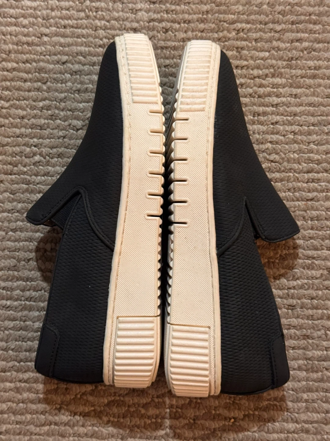 Decluttering my shoe pile and letting go of this second pair I don’t need. It was meant to be a backup, but my first pair is still going strong! These sleek black slip-ons were only tried on once indoors. Not sure how the sole got a bit dusty, but they’re in perfect condition overall—just collecting dust.