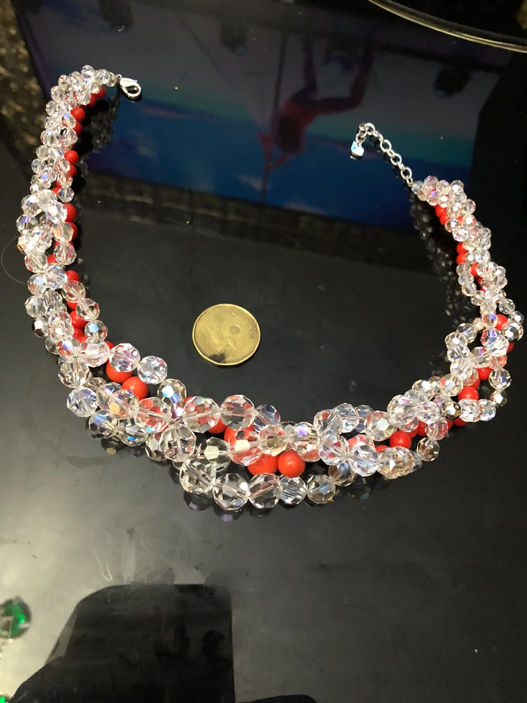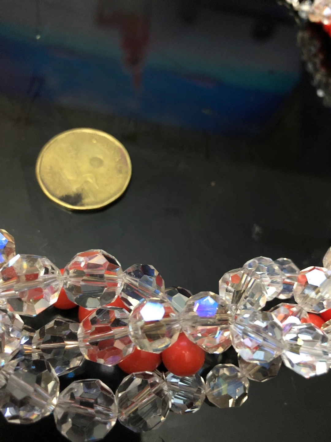 9A beautiful beaded necklace with clear and red beads, perfect for adding a touch of sparkle to any outfit