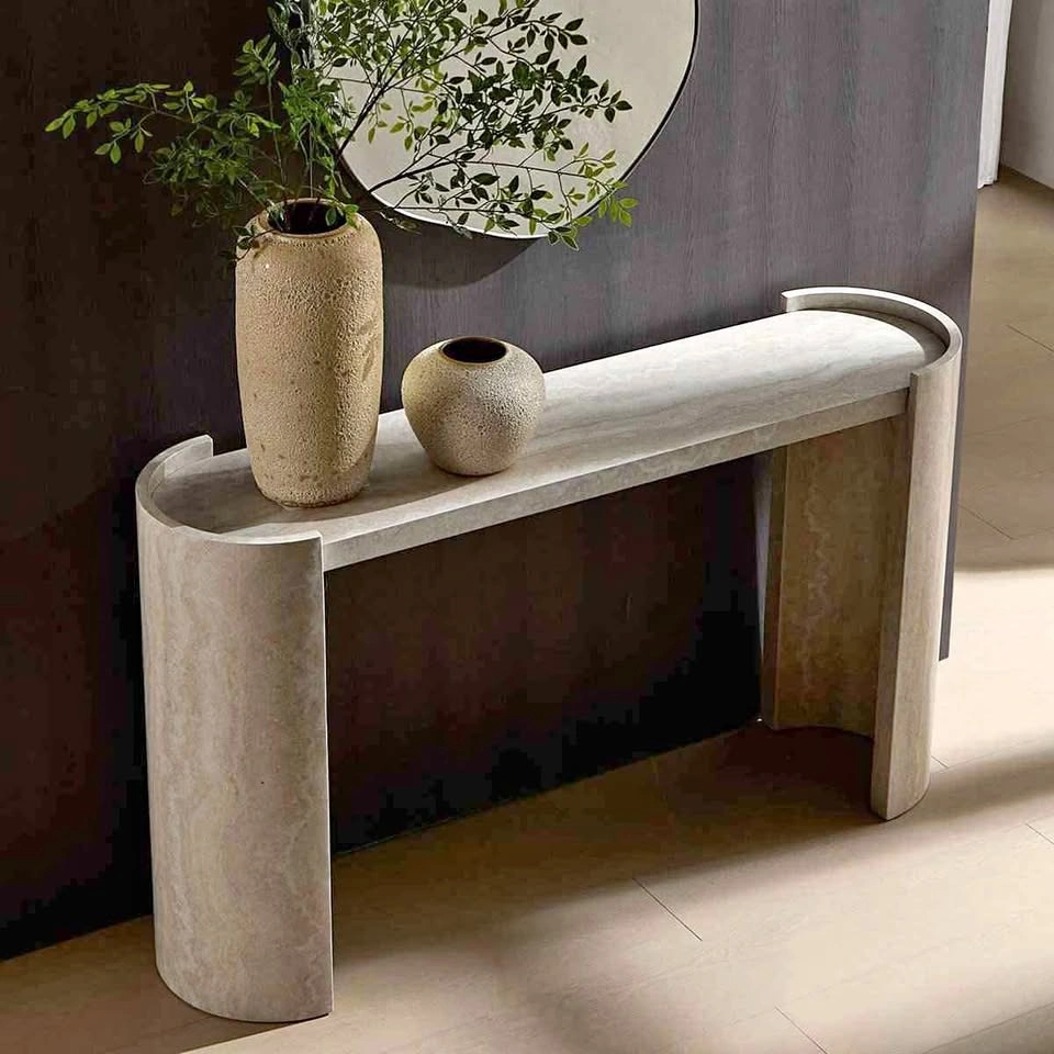 15Elevate your interior with the stunning faux Mars marble tabletop of this console table. The faux Mars pattern surface design combined with the sleek curved legs creates the perfect balance between modern sophistication and timeless appeal. The clean lines and minimalist design make it a versatile choice for any decor, blending well with both classic and contemporary styles. Number F10