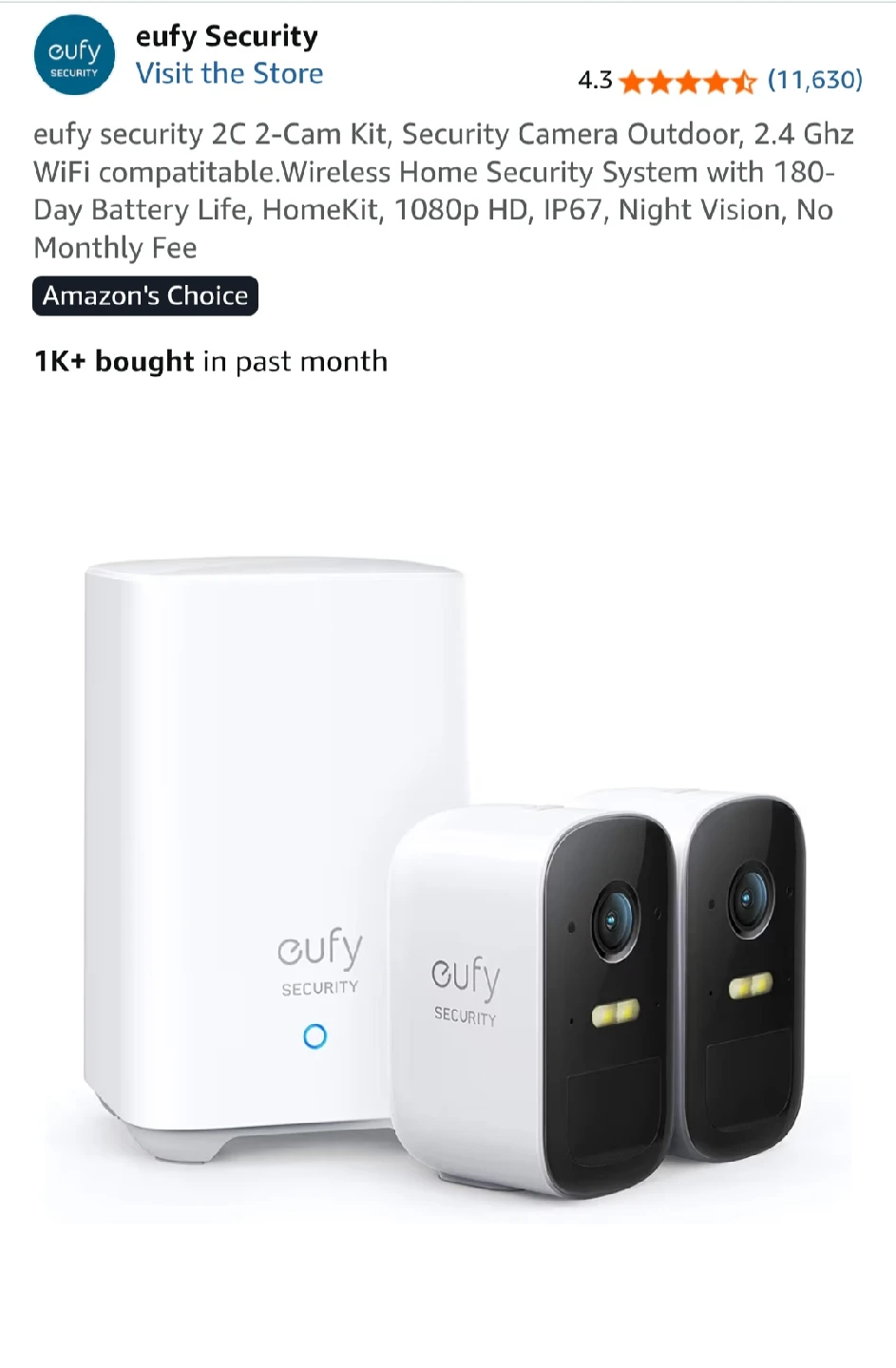 - Ready for Any Weather - With an IP67 weatherproof-rating, eufyCam 2C is built to withstand the elements.