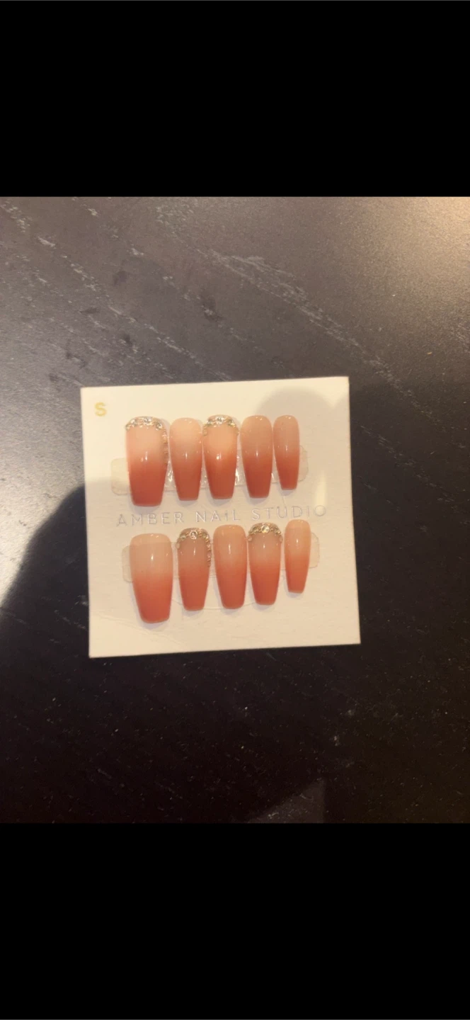 These press-on nails from Amber Nail Studio are brand new and ready to wear! They have a beautiful ombre design with a touch of sparkle at the base of each nail
