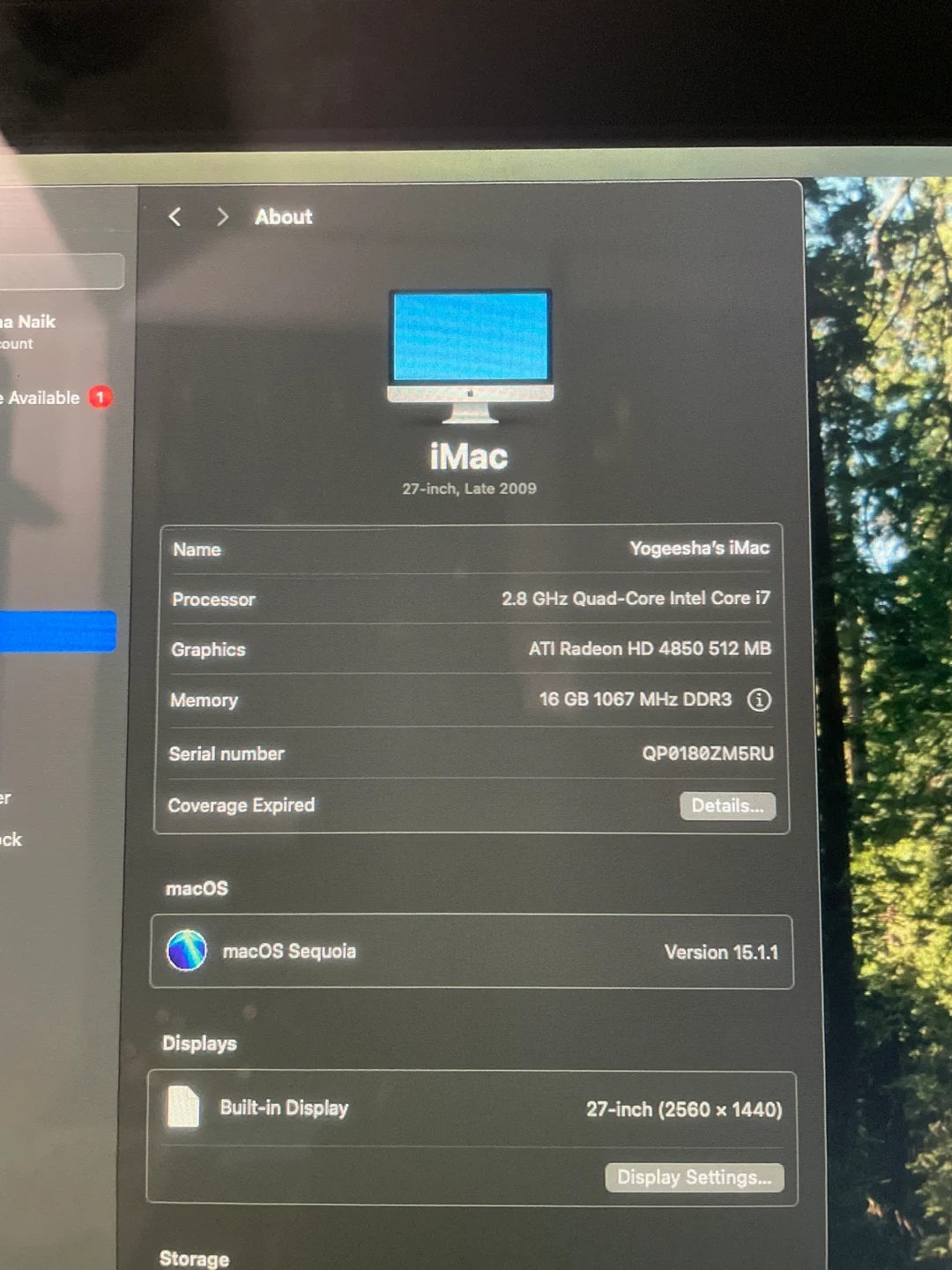 1000+Selling an Apple iMac 27-inch. It features a 2.8 GHz Quad-Core Intel Core i7 processor, 16 GB 1067 MHz DDR3 memory, and an ATI Radeon HD 4850 512 MB graphics card. The built-in display is 27-inch (2560 x 1440). 2TB hard drive MacOS sequoia