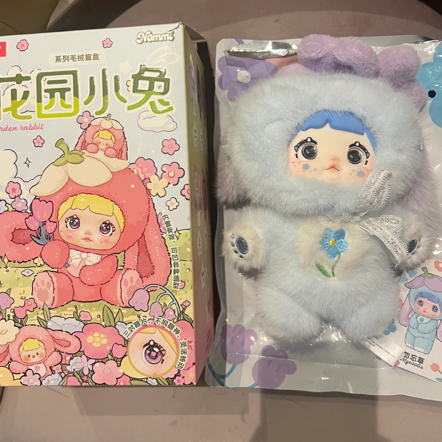 Selling a cute Nommi Garden Rabbit plush toy! It's still in its original packaging. The box is also included. This adorable plush features a soft, fuzzy design and comes with posable parts for different looks. A sweet addition to any collection!