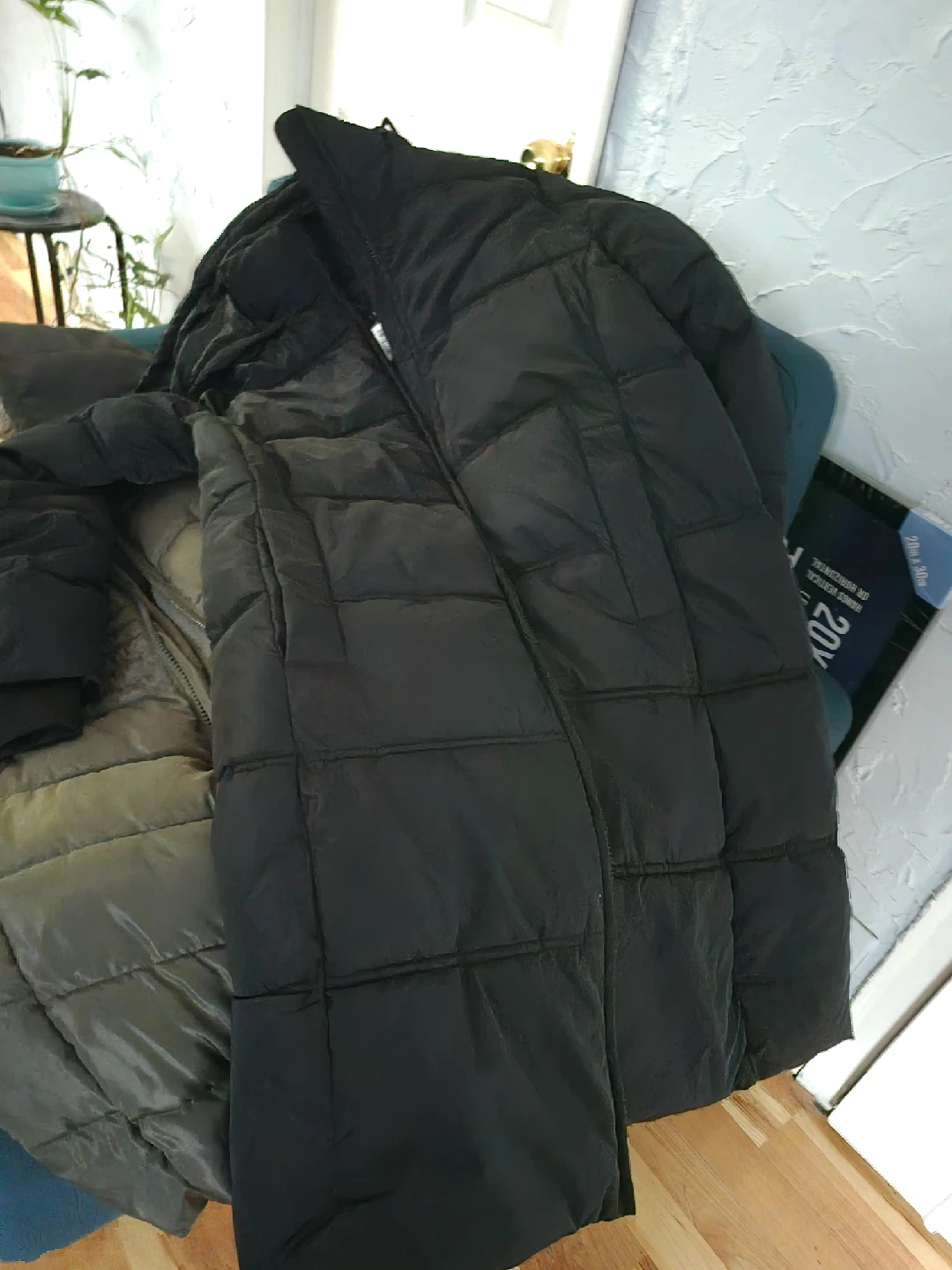 Selling a black puffer jacket. It's in great condition and ready for the cold weather! It's a stylish and warm choice for those chilly days