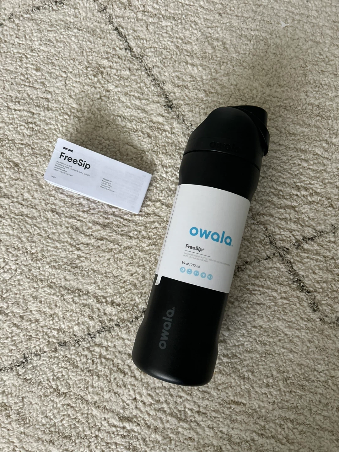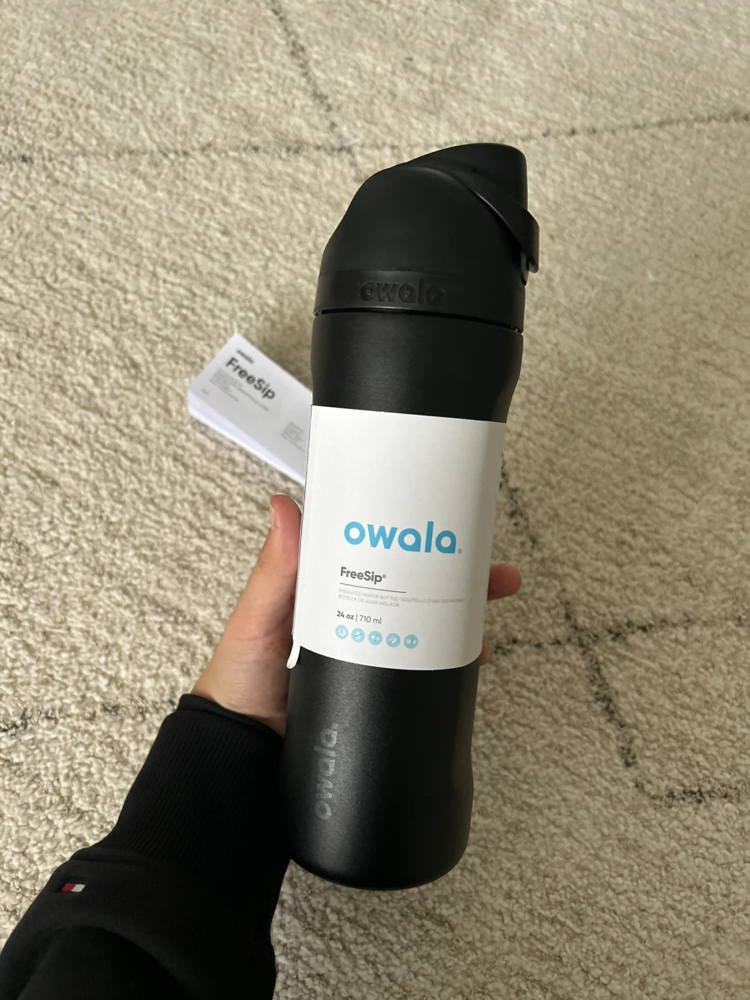 Selling a black Owala FreeSip water bottle! This one holds 24oz (710 ml) and is perfect for staying hydrated on the go. It features the FreeSip spout and a locking push-button lid. Lightweight and portable, it's a great choice for anyone looking for a reliable water bottle