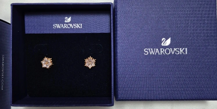 85Selling a pair of Swarovski stud earrings in rose gold. They come in the original box. The style number is 5428429. These are perfect for adding a touch of sparkle to any outfit!