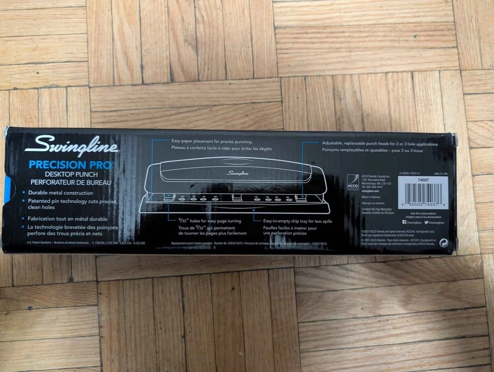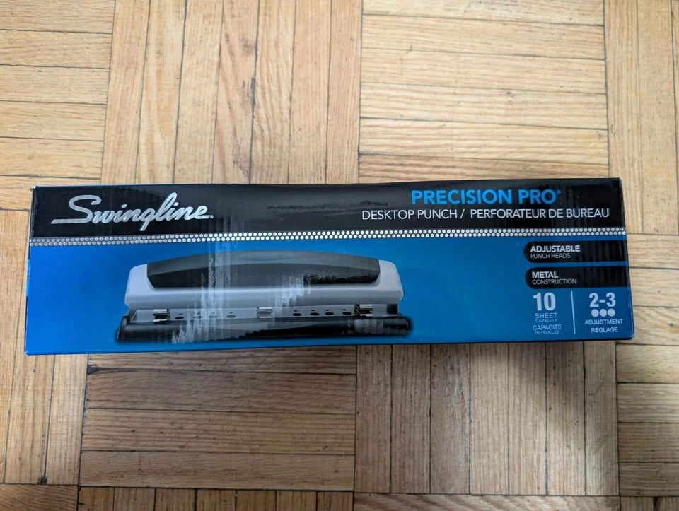 64Swingline Precision Pro Desktop Punch 2 or 3 holes 10 sheets capacity Sturdy metal body Adjustable holes Pickup near Keele and Finch Moving sale (check out my other listings as well).
