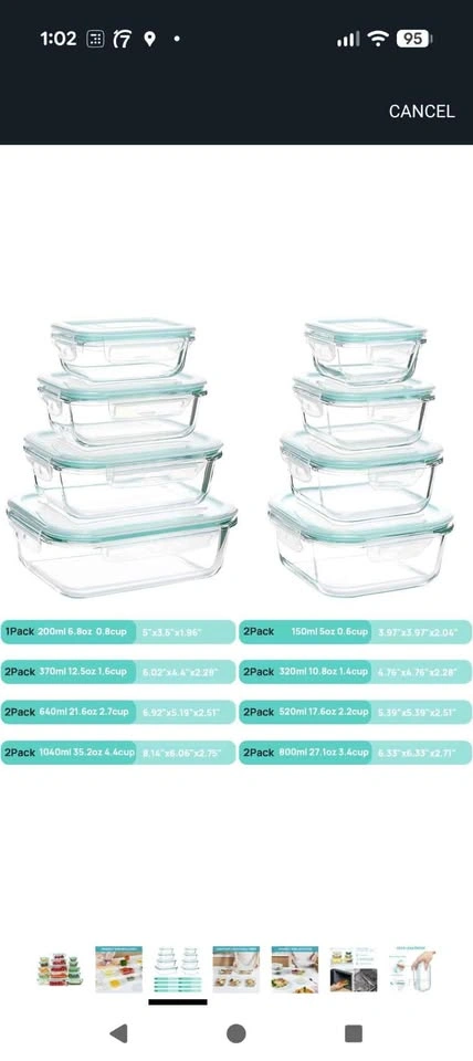6pk - (2 rectangular 1.6 cup, 2 rectangular 4.5 cup; 1 round 1.7 cup, and 1 round 4 cup) and 6 lids