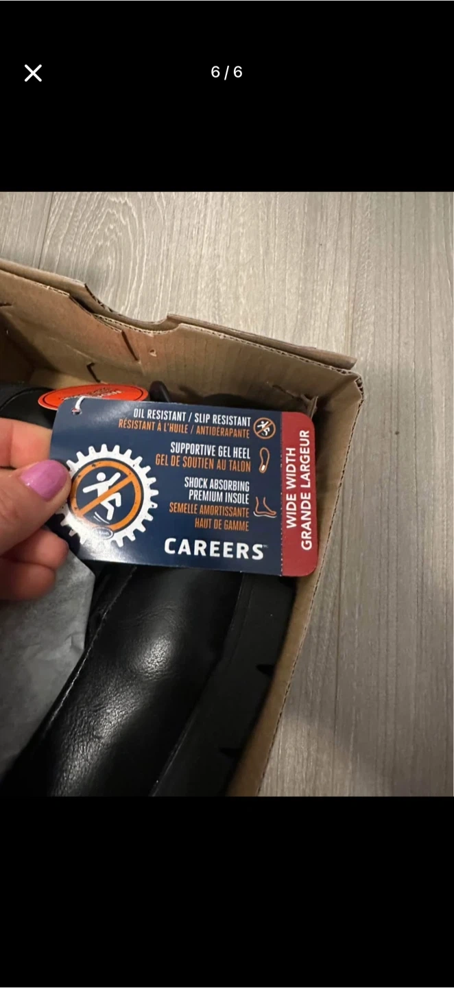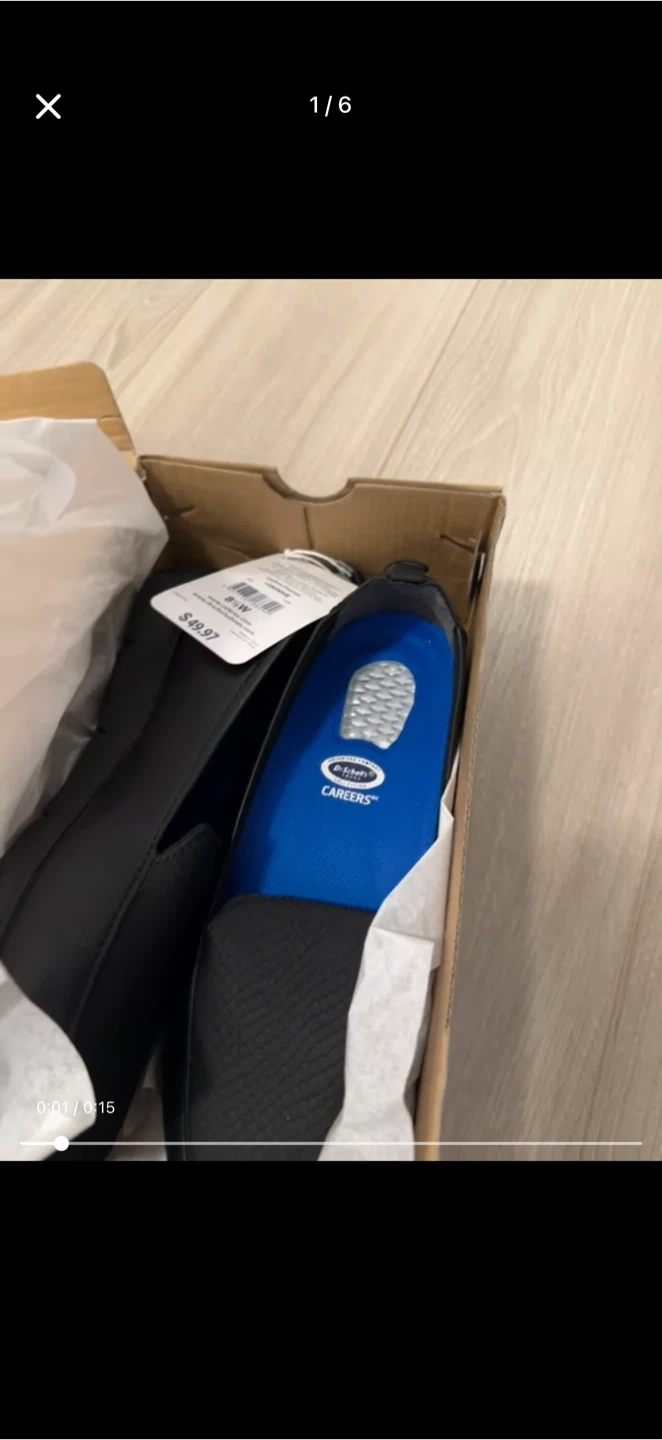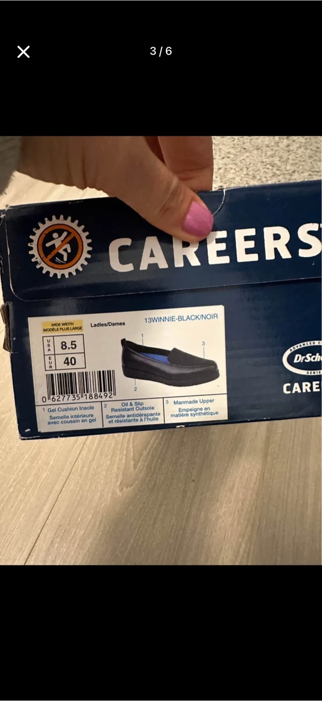 Dr. Scholl's Careers 'Winnie' loafers in black, size 8.5 Wide. These are brand new and come in the original box. They feature a manmade upper and a slip-resistant sole. Originally bought for $49.97!