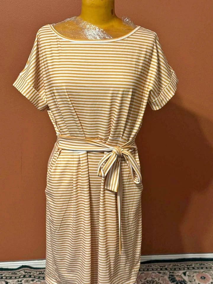 Brand New XLβ Yellow & White Striped Belted Dress (Size XL) ππ€