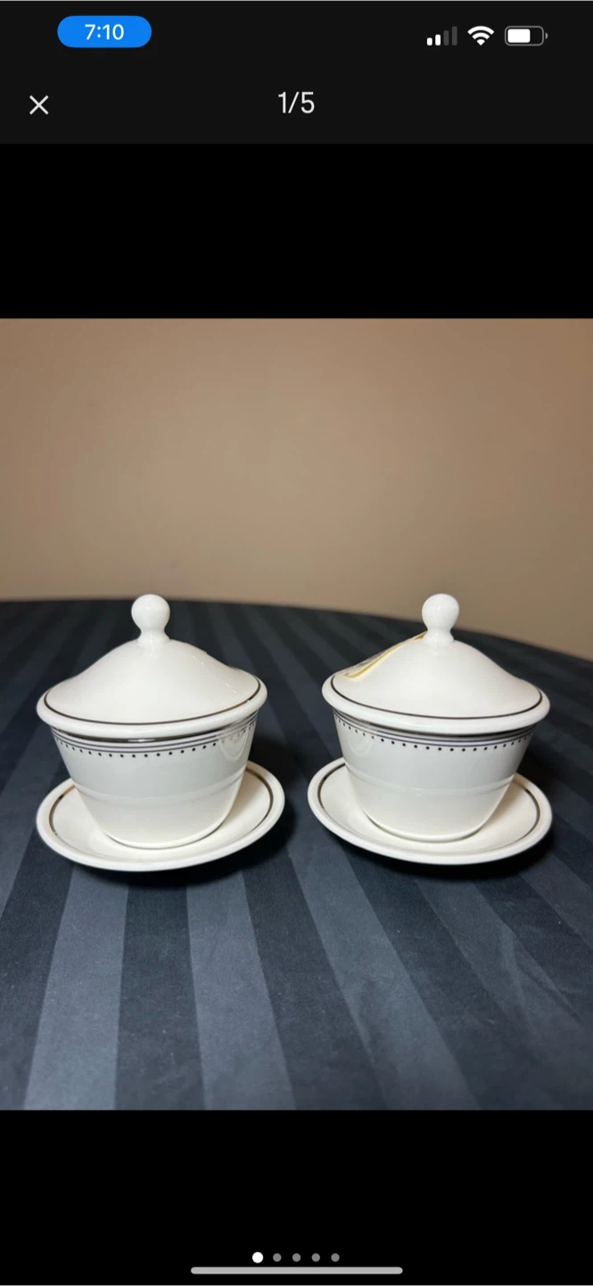 Selling a set of Vera Wang Wedgwood Grosgrain sugar bowls, complete with their lids and saucers! They're in great condition and ready to add a touch of elegance to your table