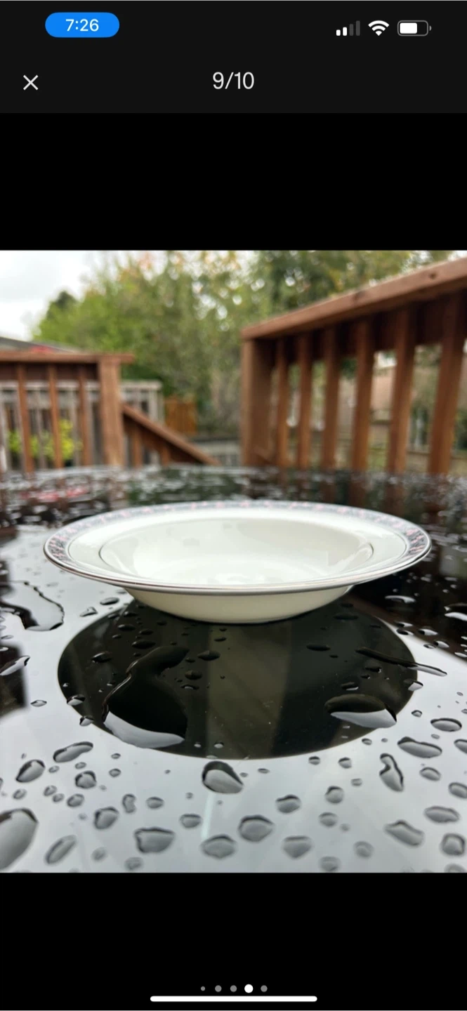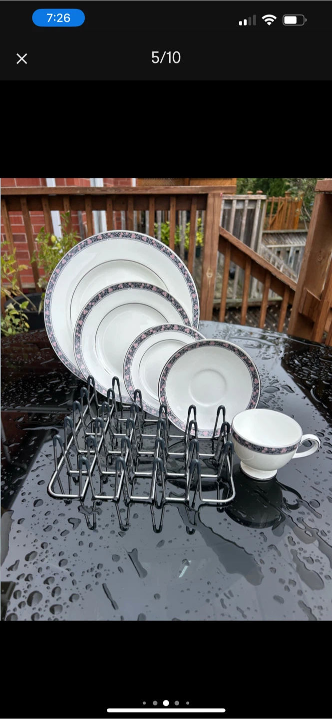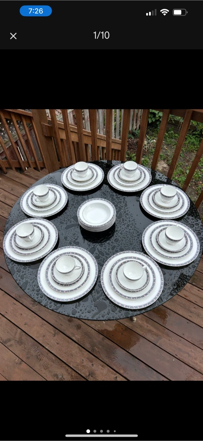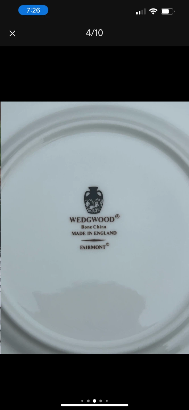 Selling a beautiful Wedgwood Fairmont Bone China dinnerware set. It includes multiple plates, saucers, and cups. This elegant set is perfect for special occasions or everyday use!