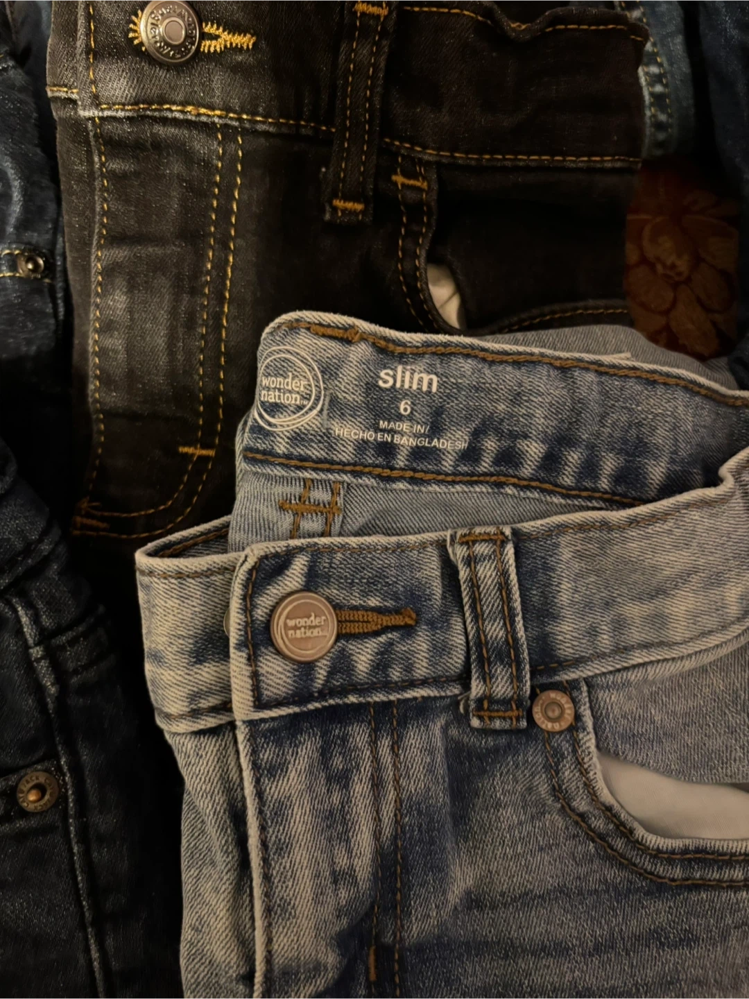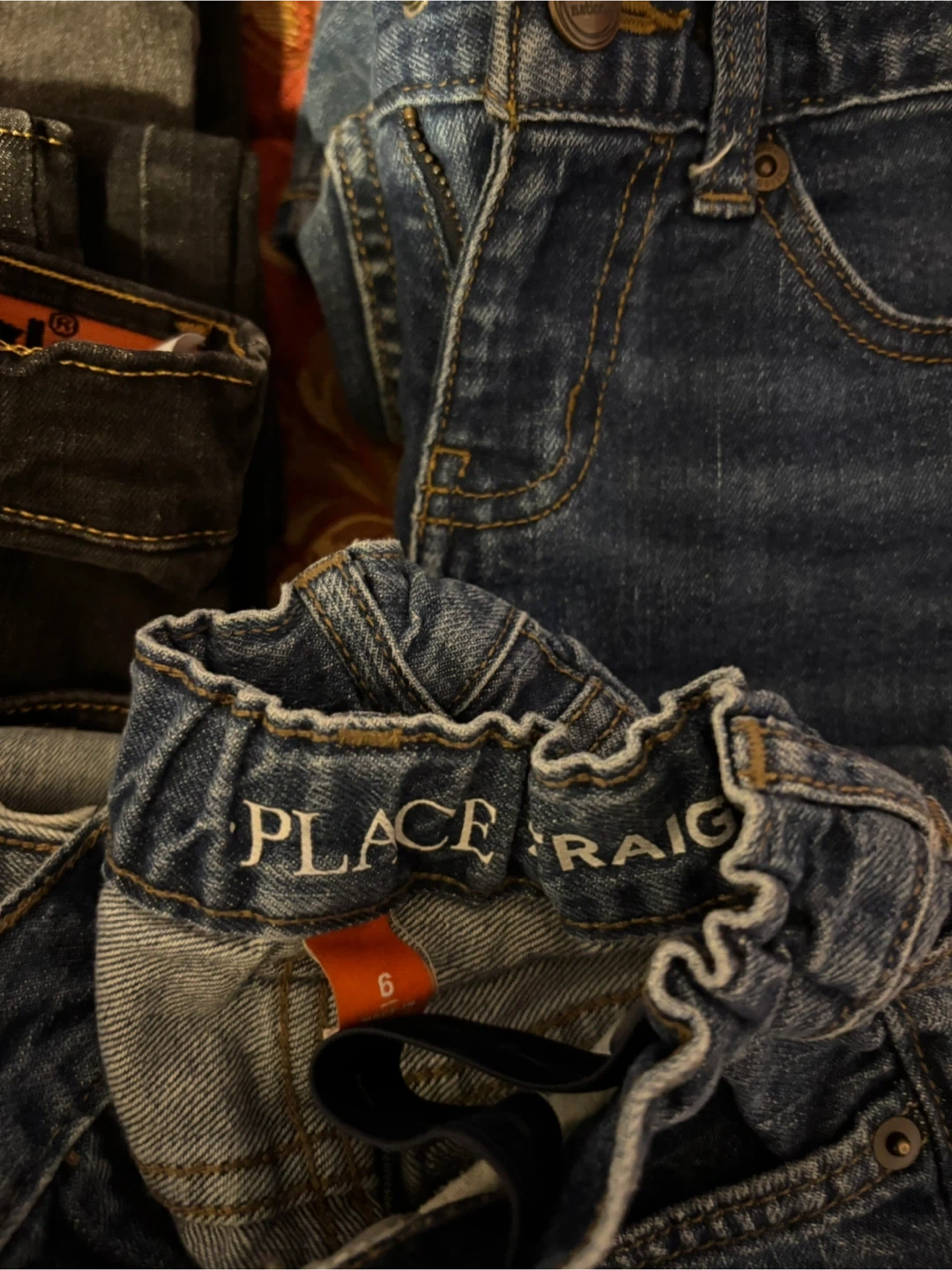 719 pairs of boys jeans size 6. Brands include “Cat and Jack, The Children’s Place, and Wonder Nation.