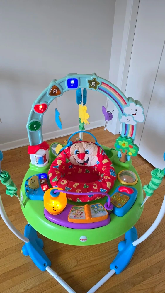 10Looking to sell this Fisher-Price Jumperoo! It's in great shape and ready for a new home. The activity center is perfect for keeping your little one entertained with its colourful toys and engaging activities. It's designed to help develop motor skills and provide hours of fun!
