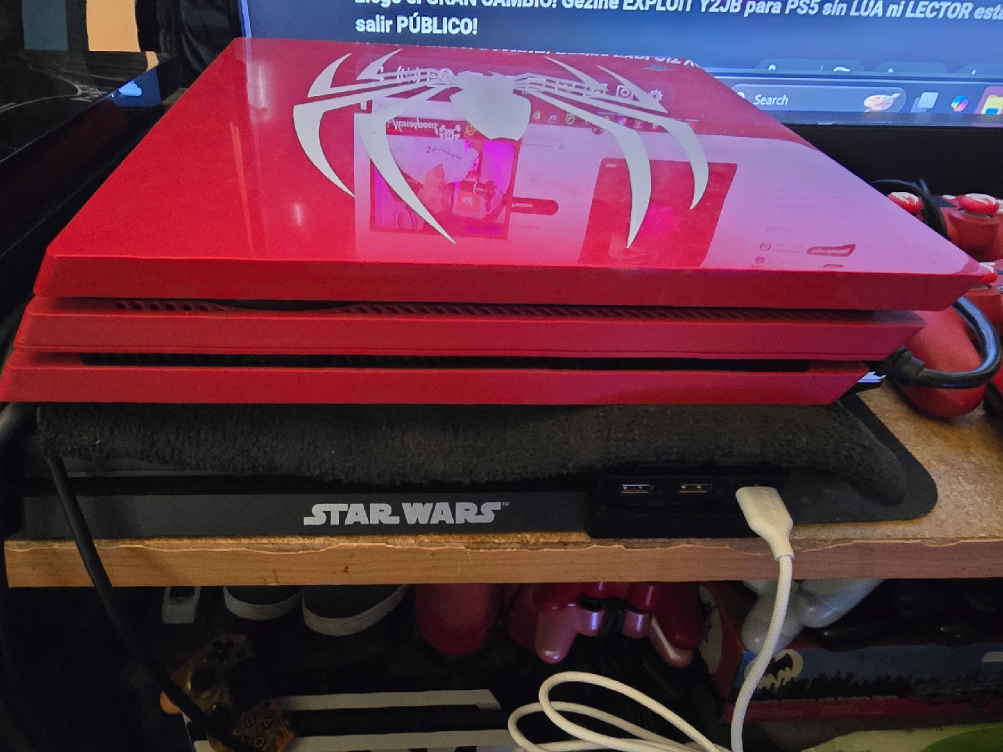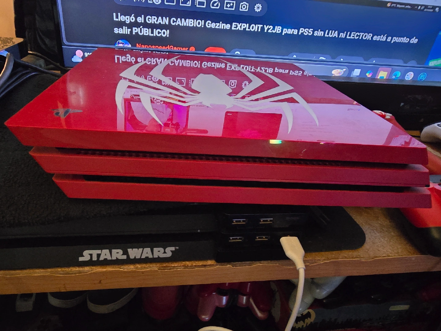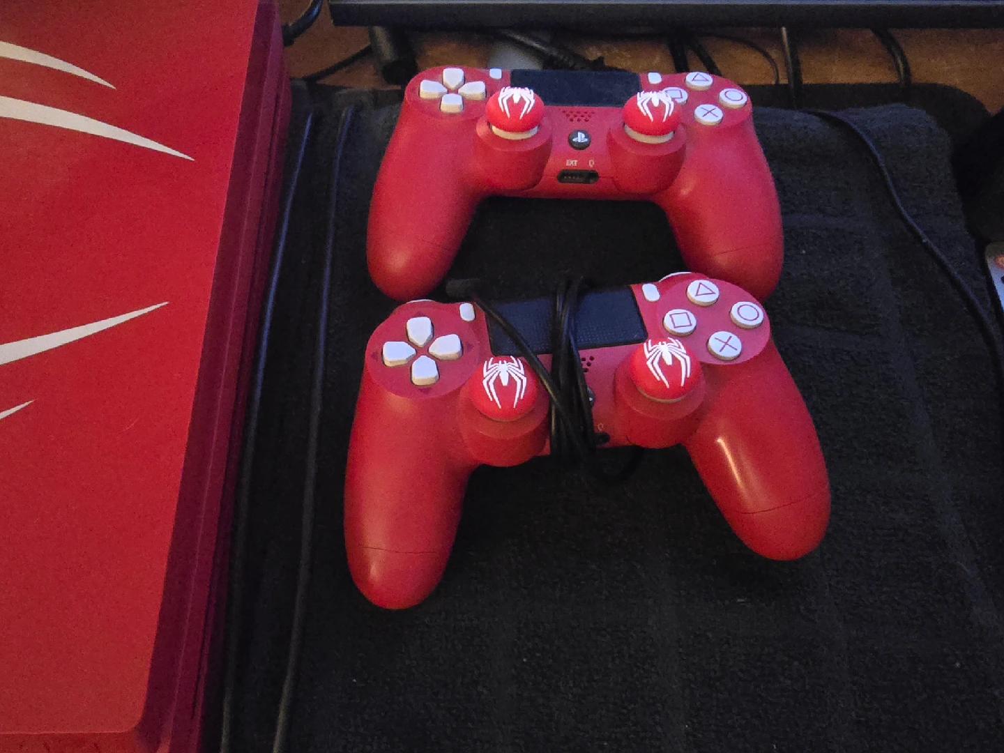 Ps4 Pro Spiderman edition with 2 official Spiderman controllers.Its on firmware 13.02 so NOT jailbreak able