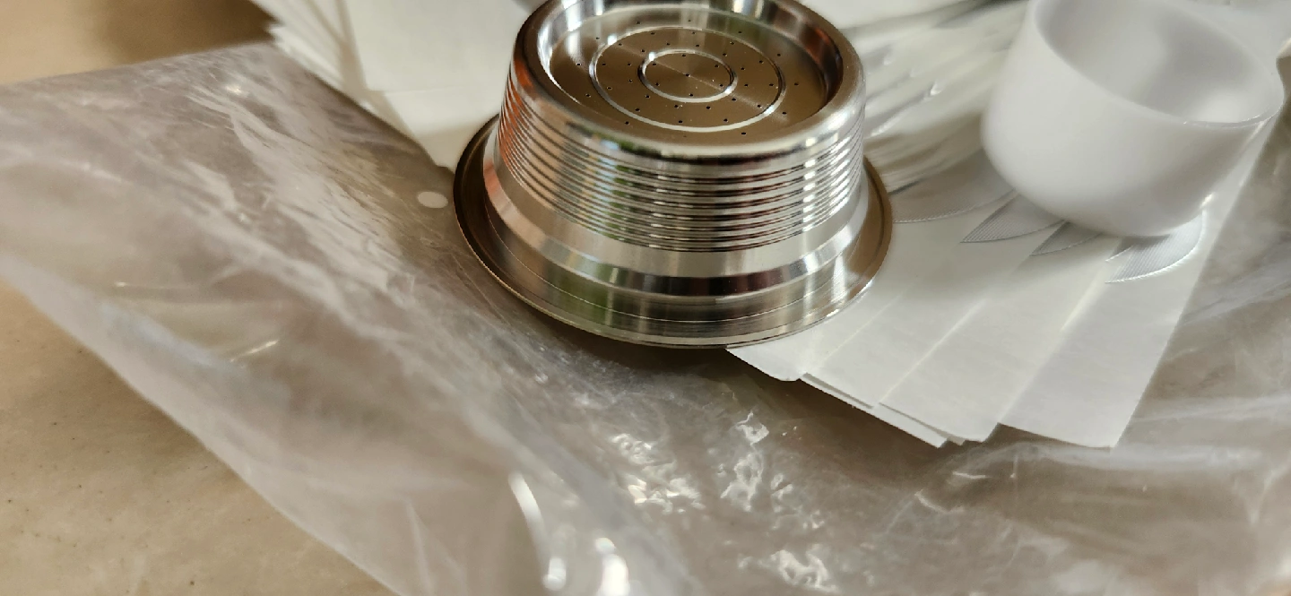 203I'm selling a set of reusable Nespresso pods. It comes with a stainless steel pod, a scoop, a brush, and a bunch of foil seals. Great for reducing waste and enjoying your own coffee blends at home!