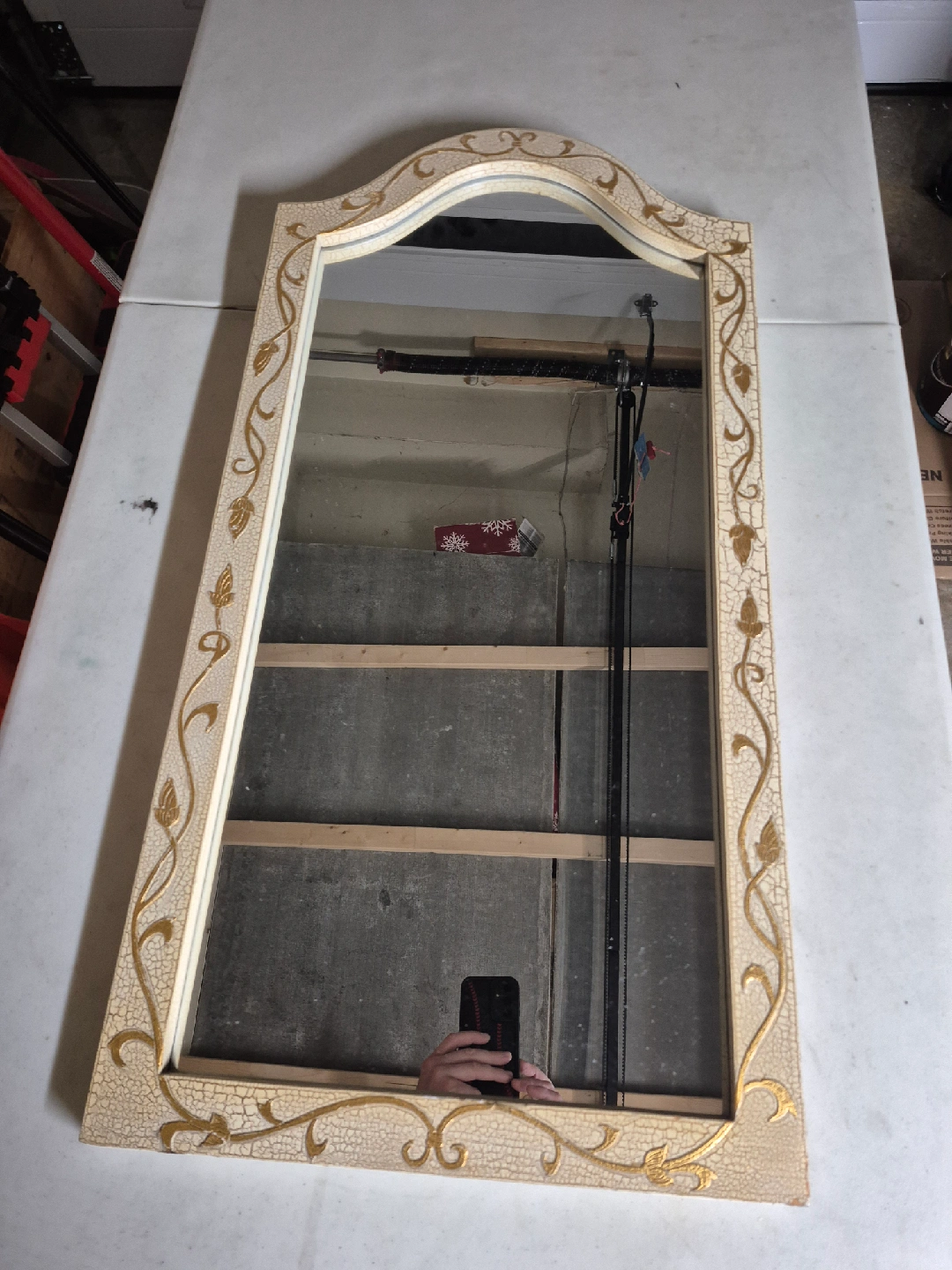 98Selling a lovely ornate wall mirror. It measures approximately 37 inches in length and 22 inches in width. Perfect for adding a touch of elegance to any room!