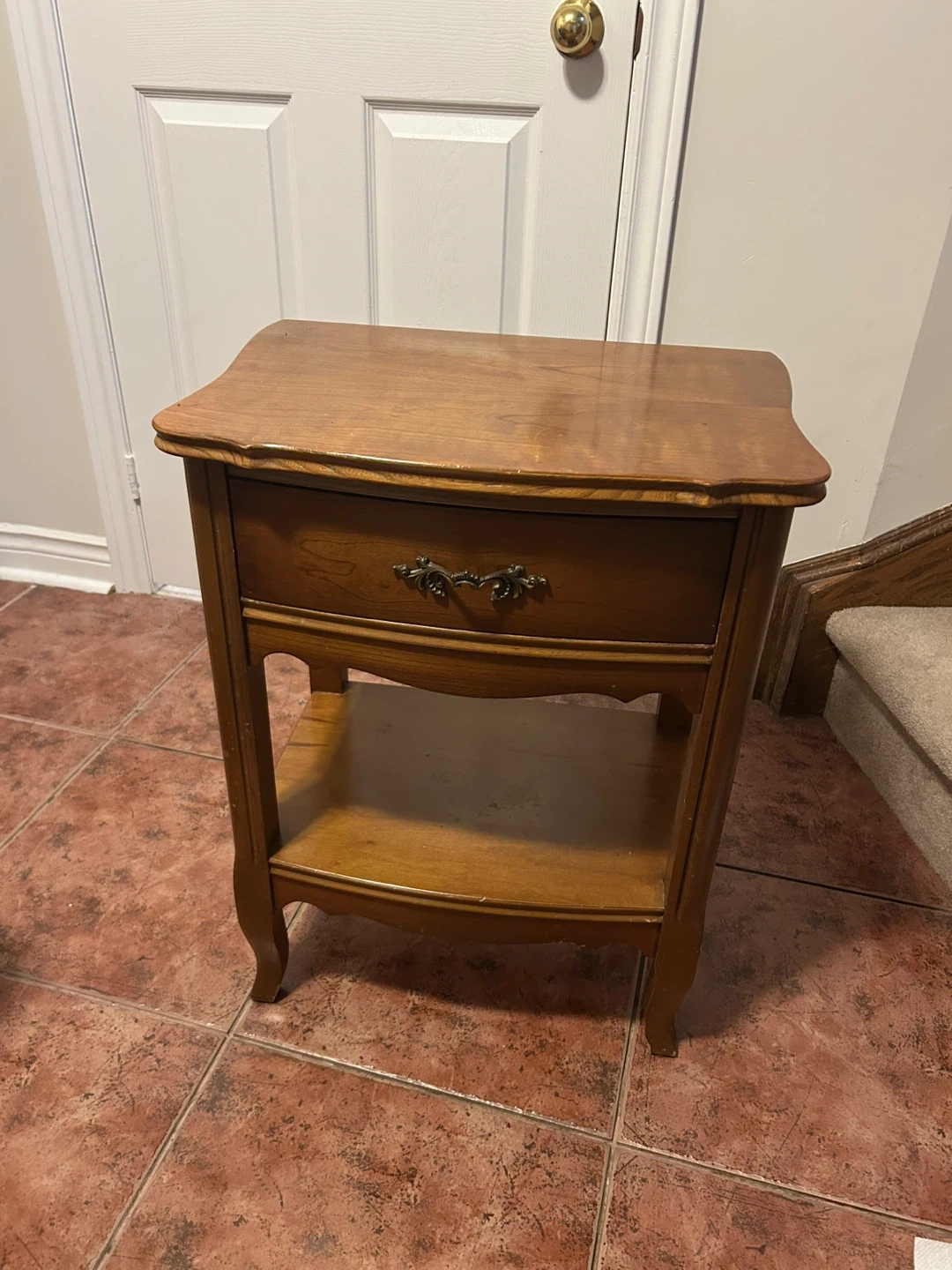 Selling a solid wood charming vintage wooden nightstand! It features a drawer and a lower shelf for extra storage. It's perfect for adding a touch of classic style to your bedroom or living space. It's in good condition and ready for a new home