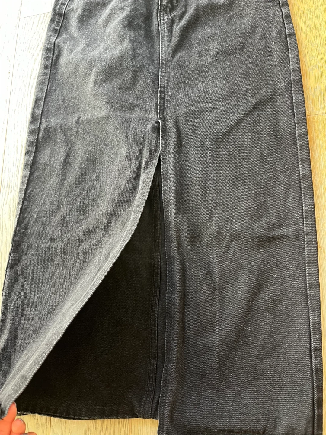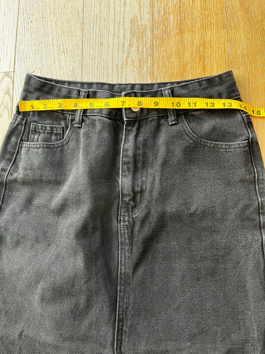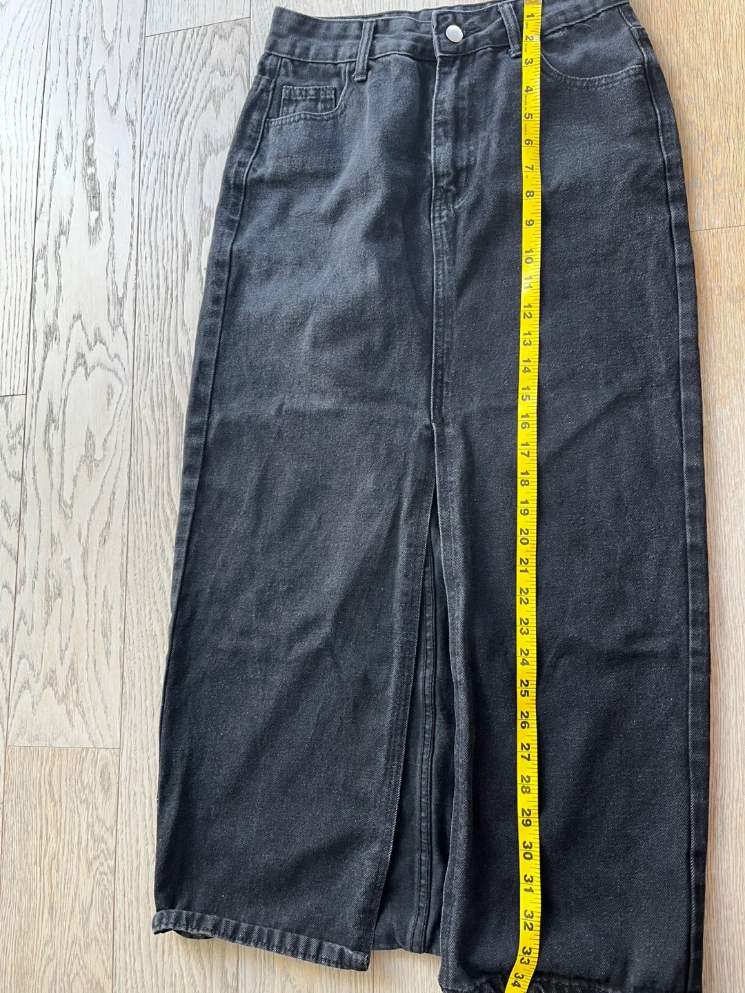 1000+It's a size small and has a slit in the front. The material is 79% cotton. It measures about 14 inches across the waist and 34 inches long Pick up only Cash only