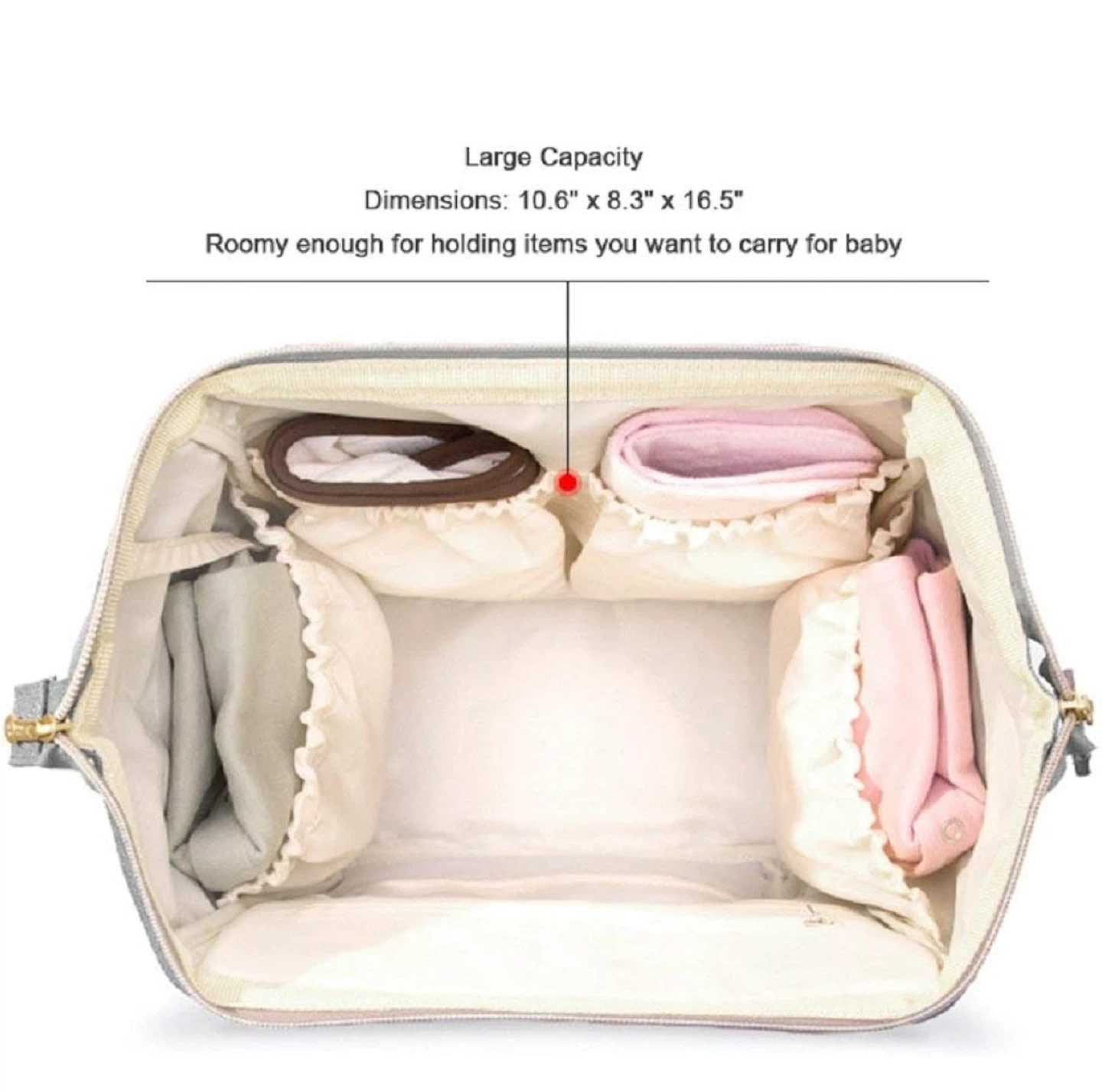 - Large capacity: 10.6" x 8.3" x 16.5"