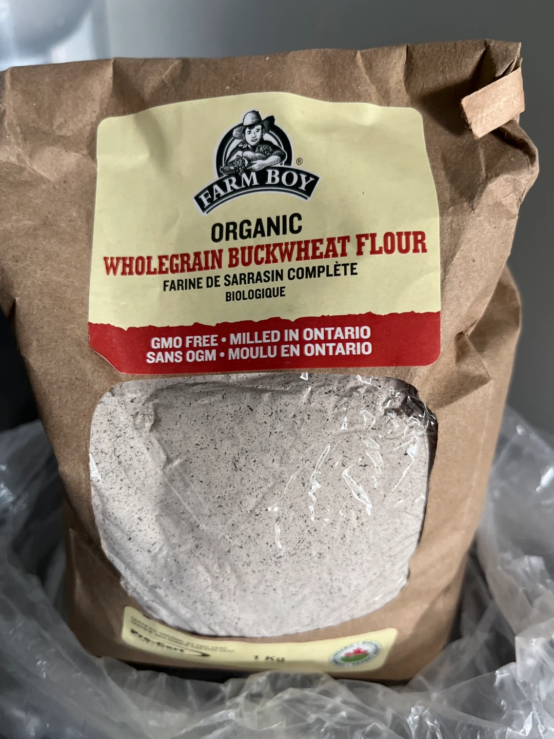 Giving a bag of Farm Boy Organic Wholegrain Buckwheat Flour. It's GMO-free and milled in Ontario.