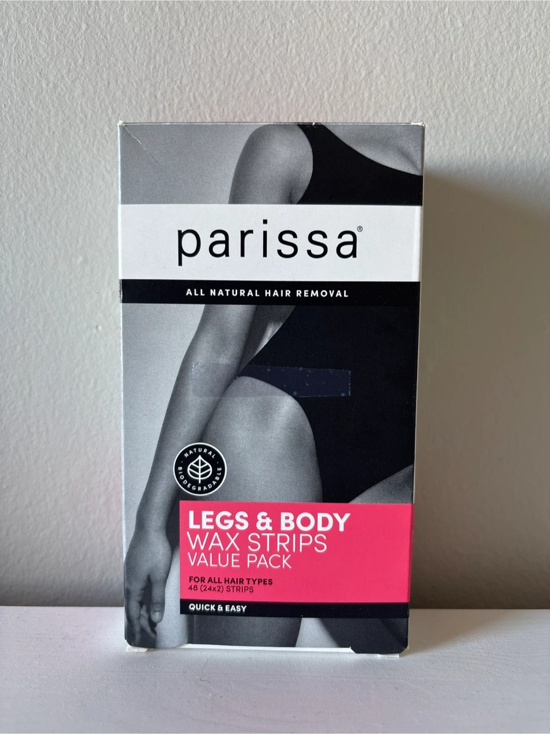 I'm selling a Parissa Legs & Body Wax Strips Value Pack. It includes 48 wax strips that are ready to use, mess and fragrance free, and biodegradable. It also includes 5ml Ultra Soothe Oil to minimize ingrown hair. Quick and easy for hair removal and travel, for 4 weeks of smooth skin