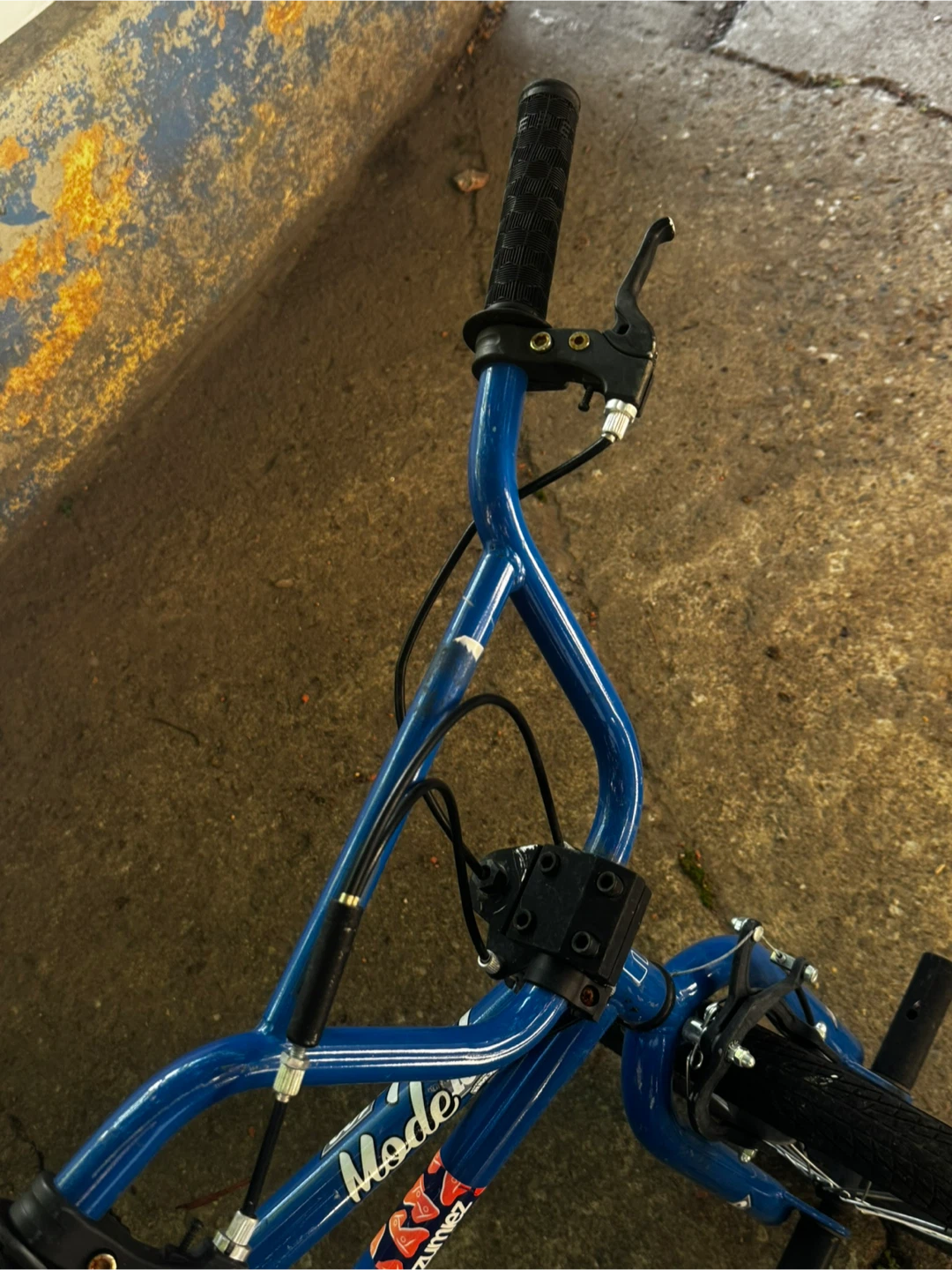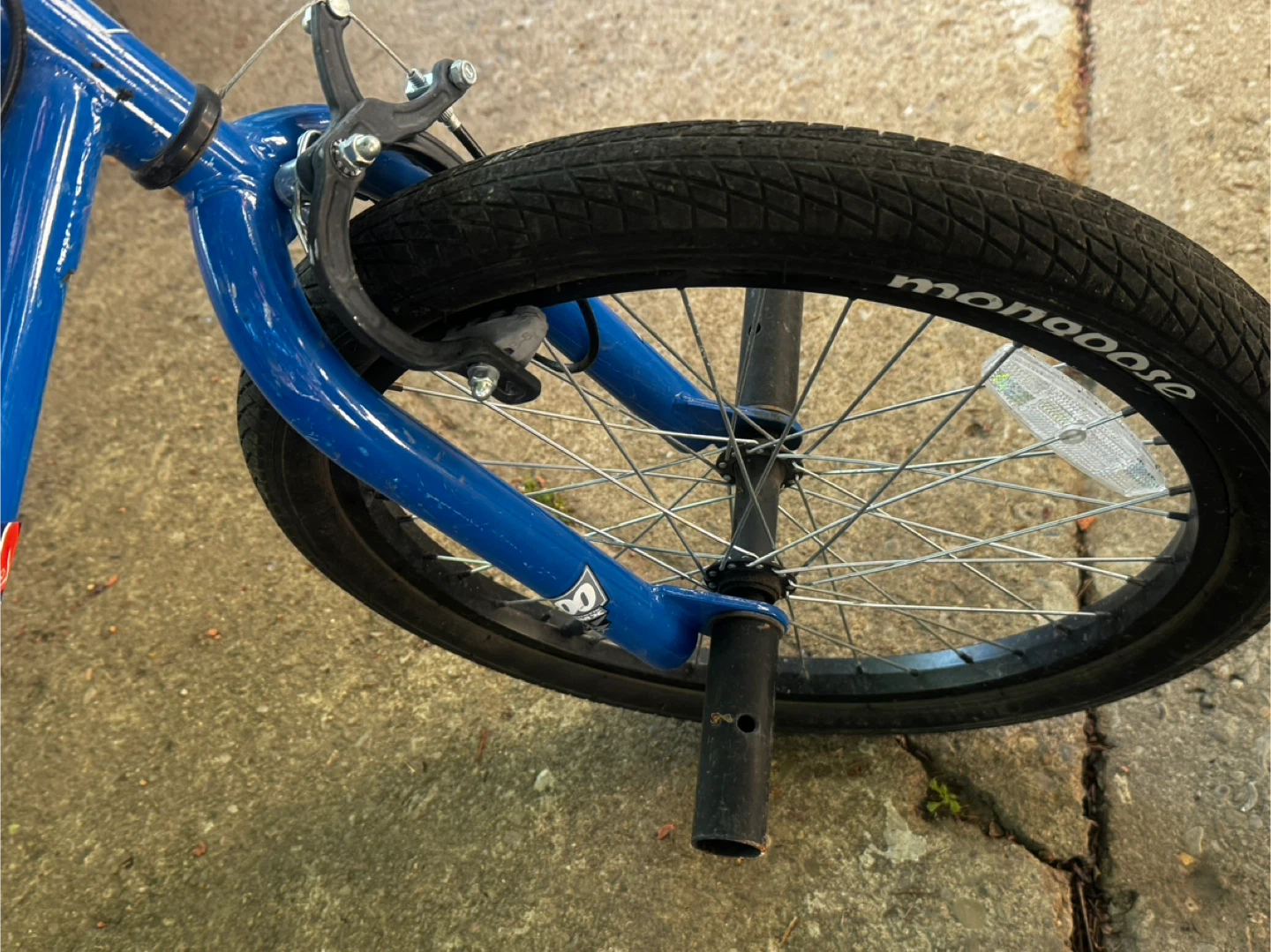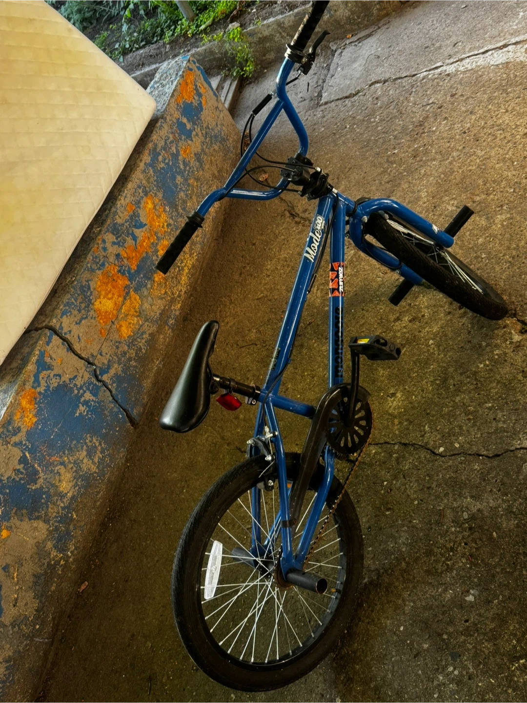 Selling a blue Mongoose Mode 100 BMX bike. It's in good condition and ready for some action! Perfect for hitting the local skate park or cruising around the neighbourhood