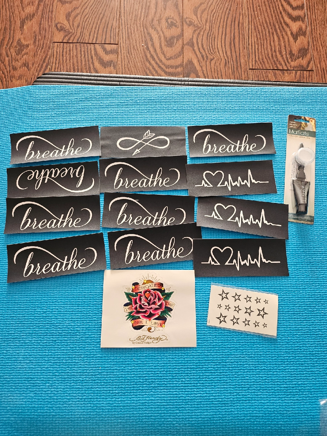 1000+Get ready to express yourself with this MatTats Hyper Realistic Tattoo set! It includes a tattoo color in black, and setting powder. The set comes with a variety of designs including Ed Hardy and other unique styles $5 for all