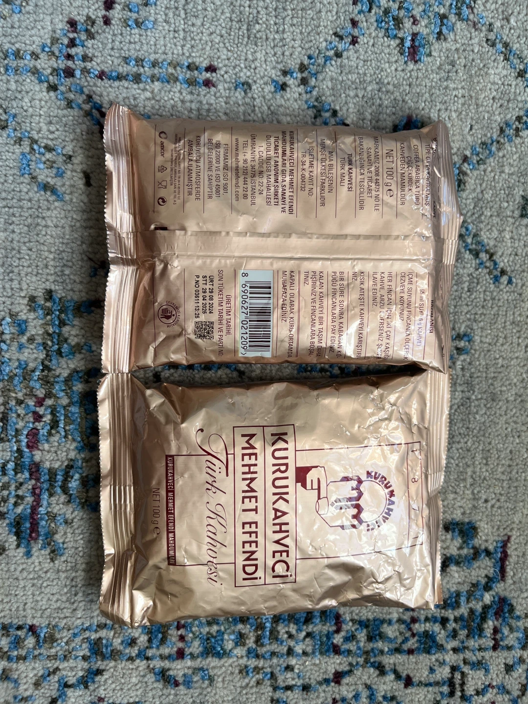 Selling two packs of Kurukahveci Mehmet Efendi Turkish Coffee. Each pack is 100g from Istanbul. Cash only. Quick pickup preferred. Address on profile. Message when you can pick up.