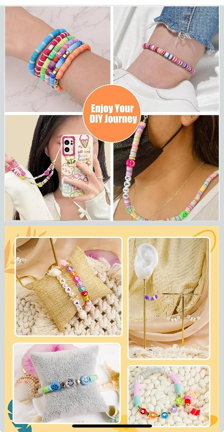 10Get creative with this DIY clay beads jewelry making kit! Perfect for making bracelets, necklaces, and more. The kit includes a variety of colourful clay beads, letter beads, and other accessories to personalize your creations. Enjoy your DIY journey!