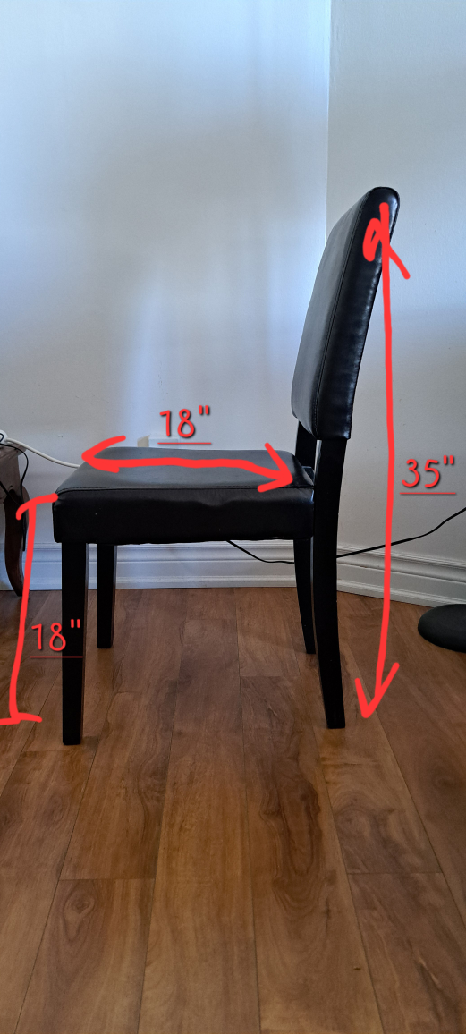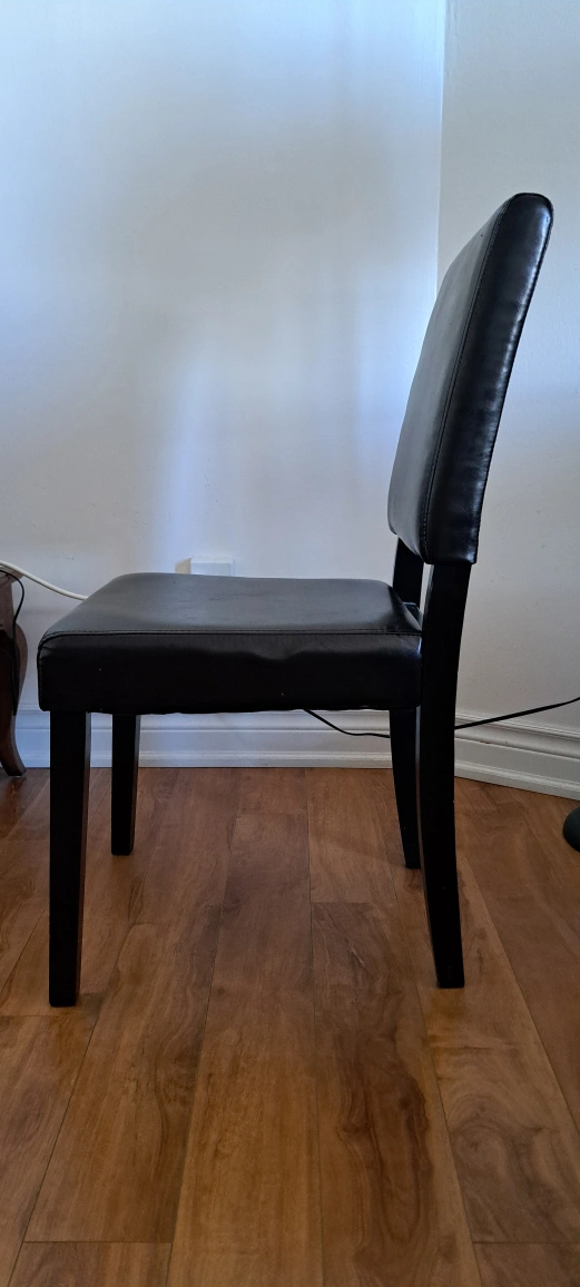 Selling a set of 6 black/deep brown dining chairs. Approximate dimensions given in the pictures.