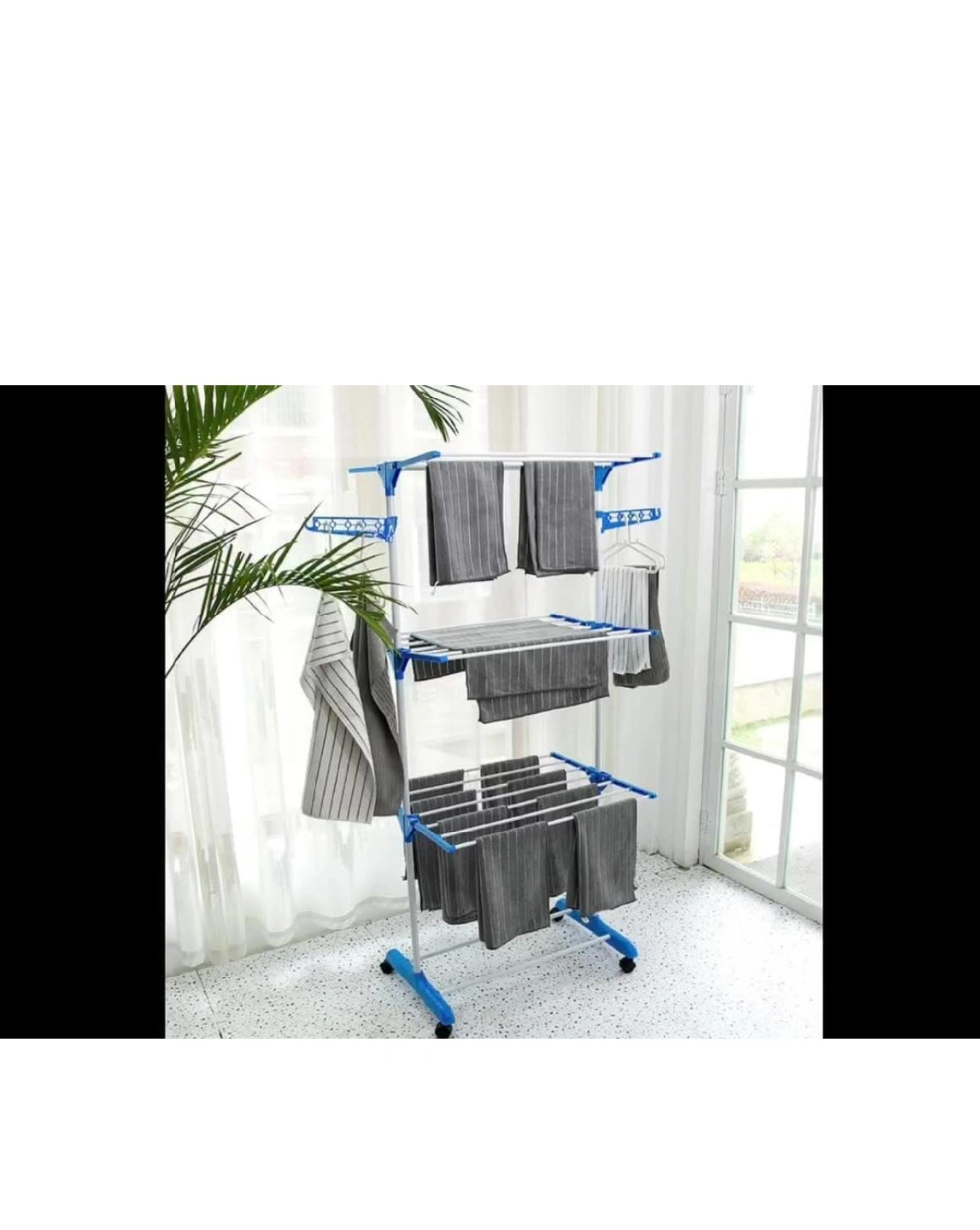 Selling a handy three-layer clothes hanger drying rack! It's perfect for maximizing space when drying your clothes. The rack is designed for easy assembly and boasts high strength and impact resistance. The dimensions are approximately 1260x640x1780mm when assembled.